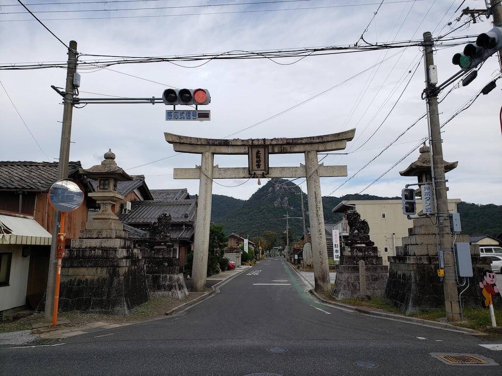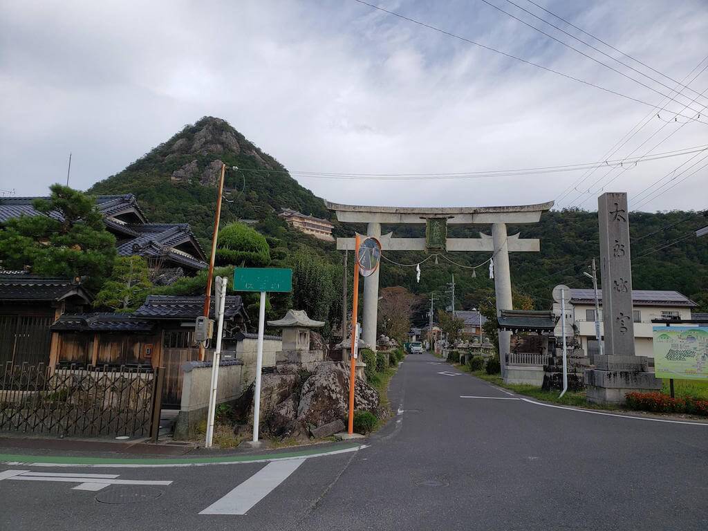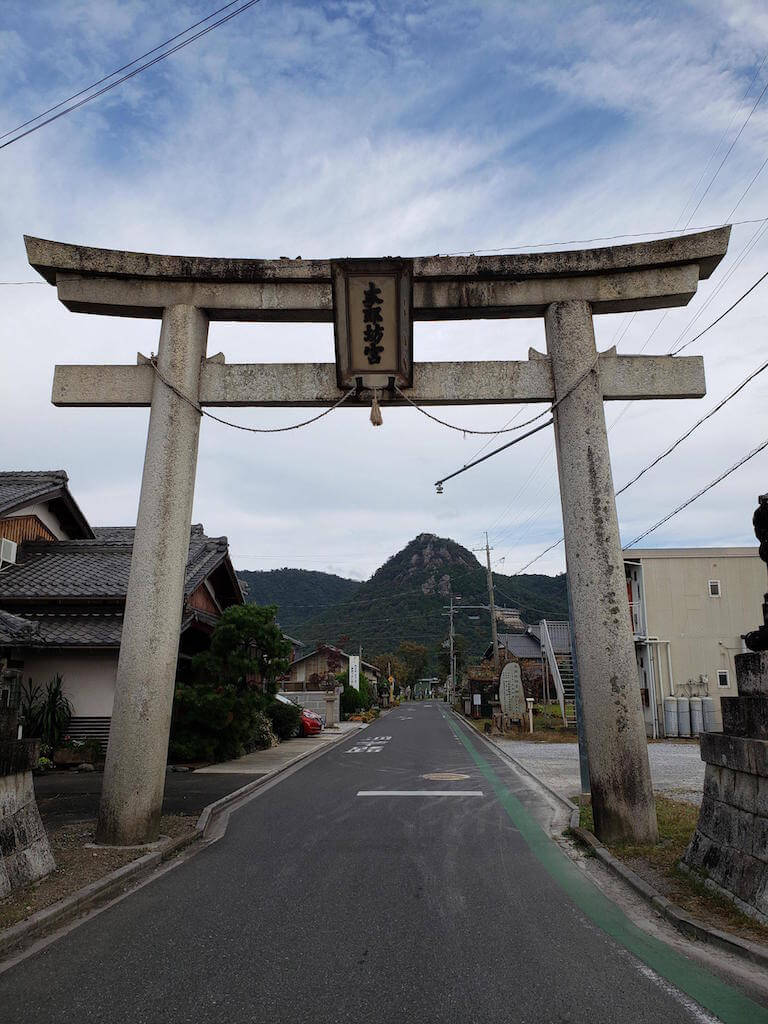 鳥居くぐったとこでもう赤神山とその中腹に太郎坊宮(阿賀神社)の社務所が見える