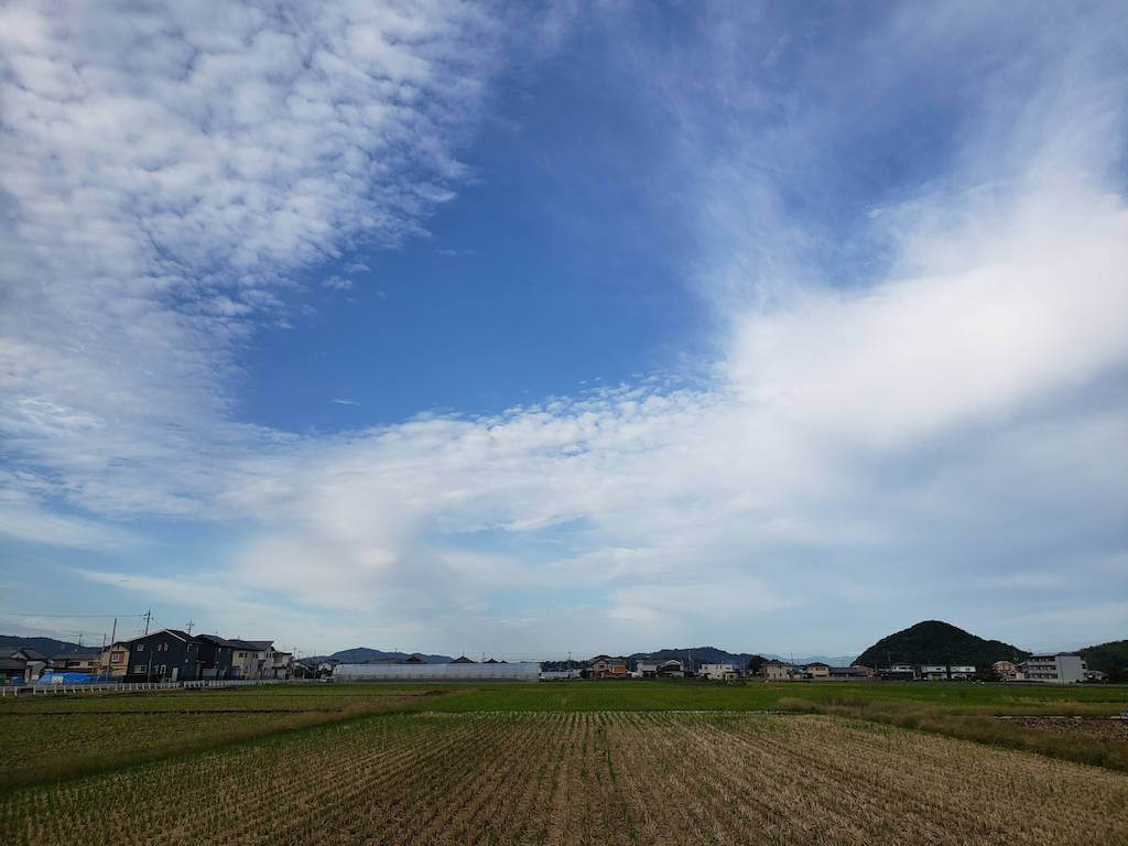 天気も良くて田んぼと山と民家の織りなす光景が美しい