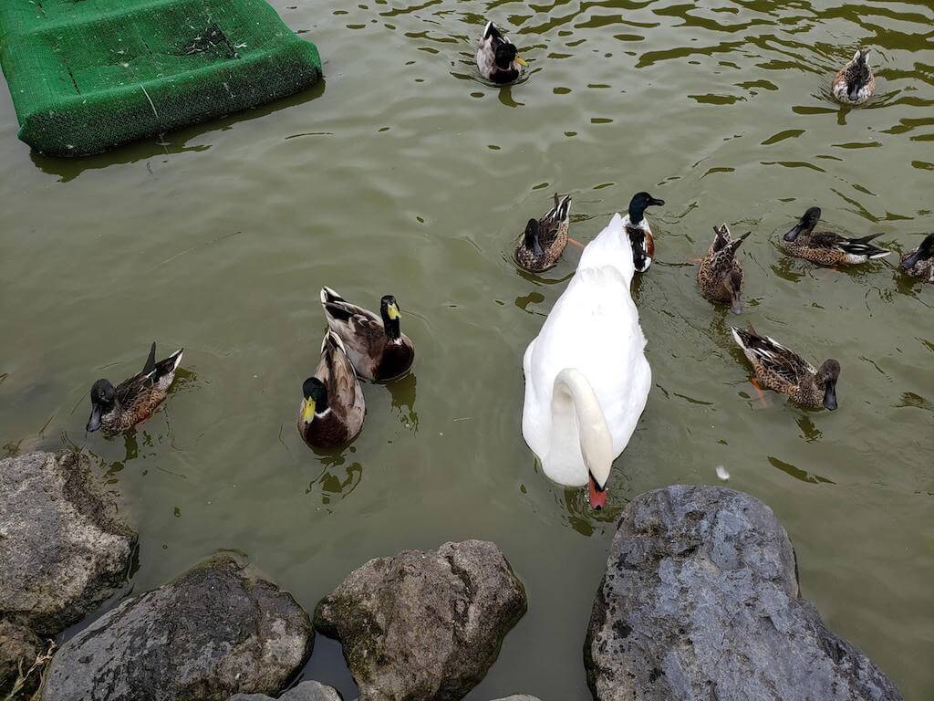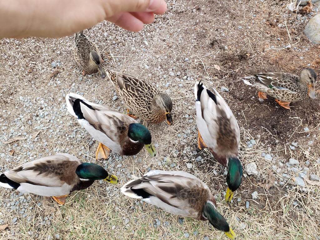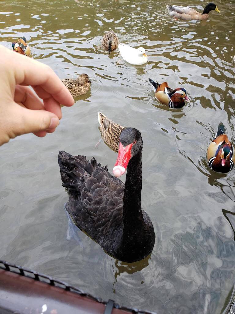 逆に餌を持ってない人には寄ってこないので、触れ合いたければ餌を購入すべし