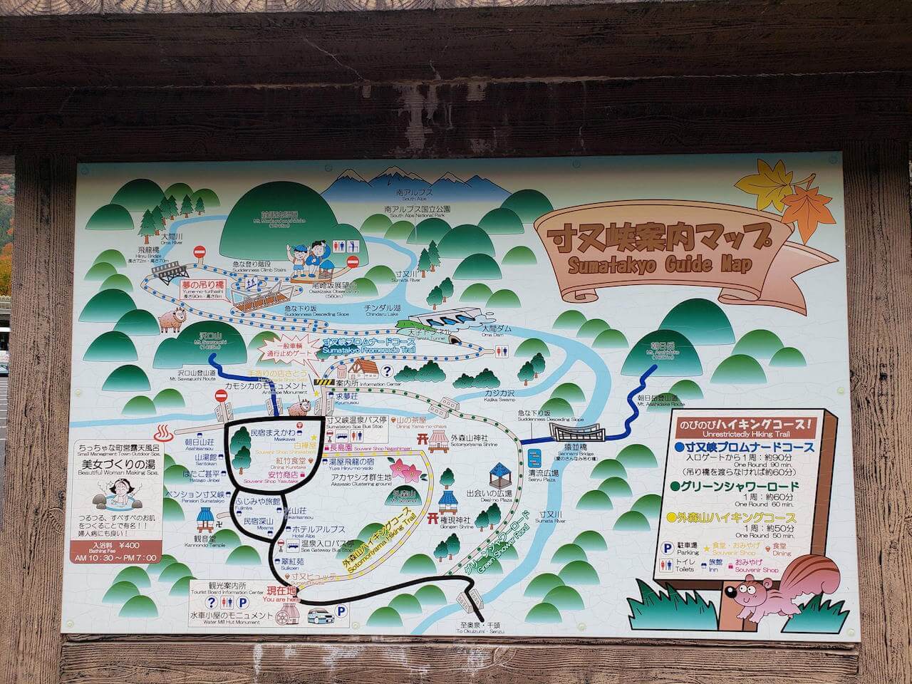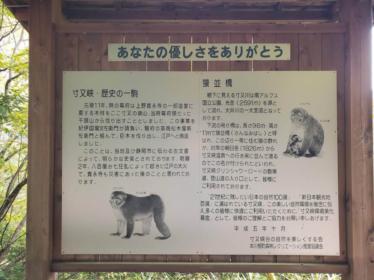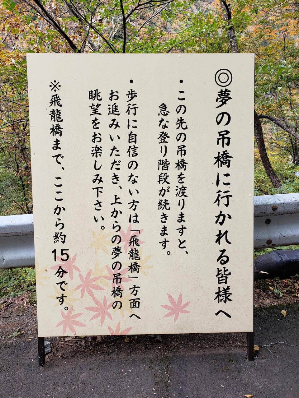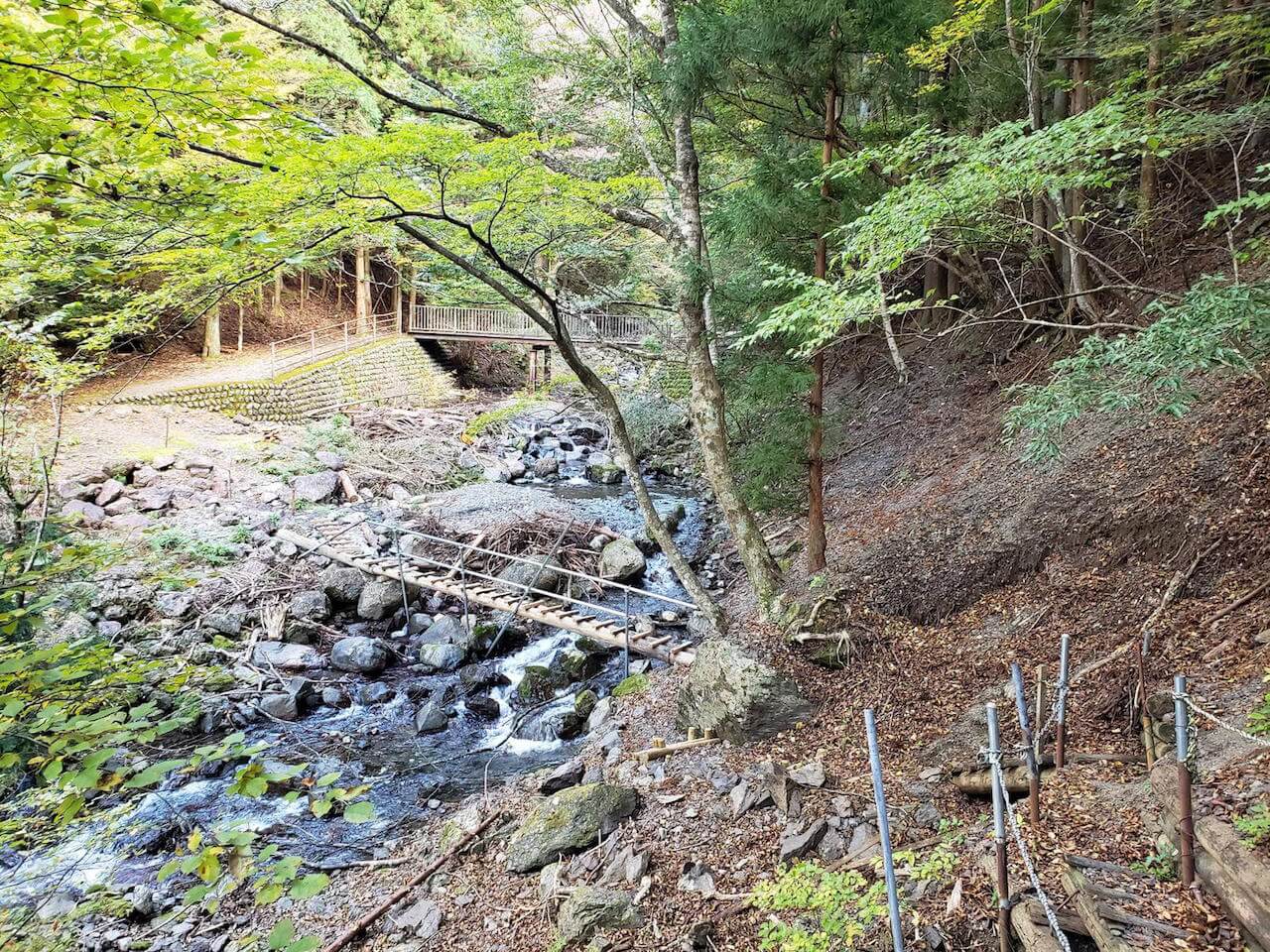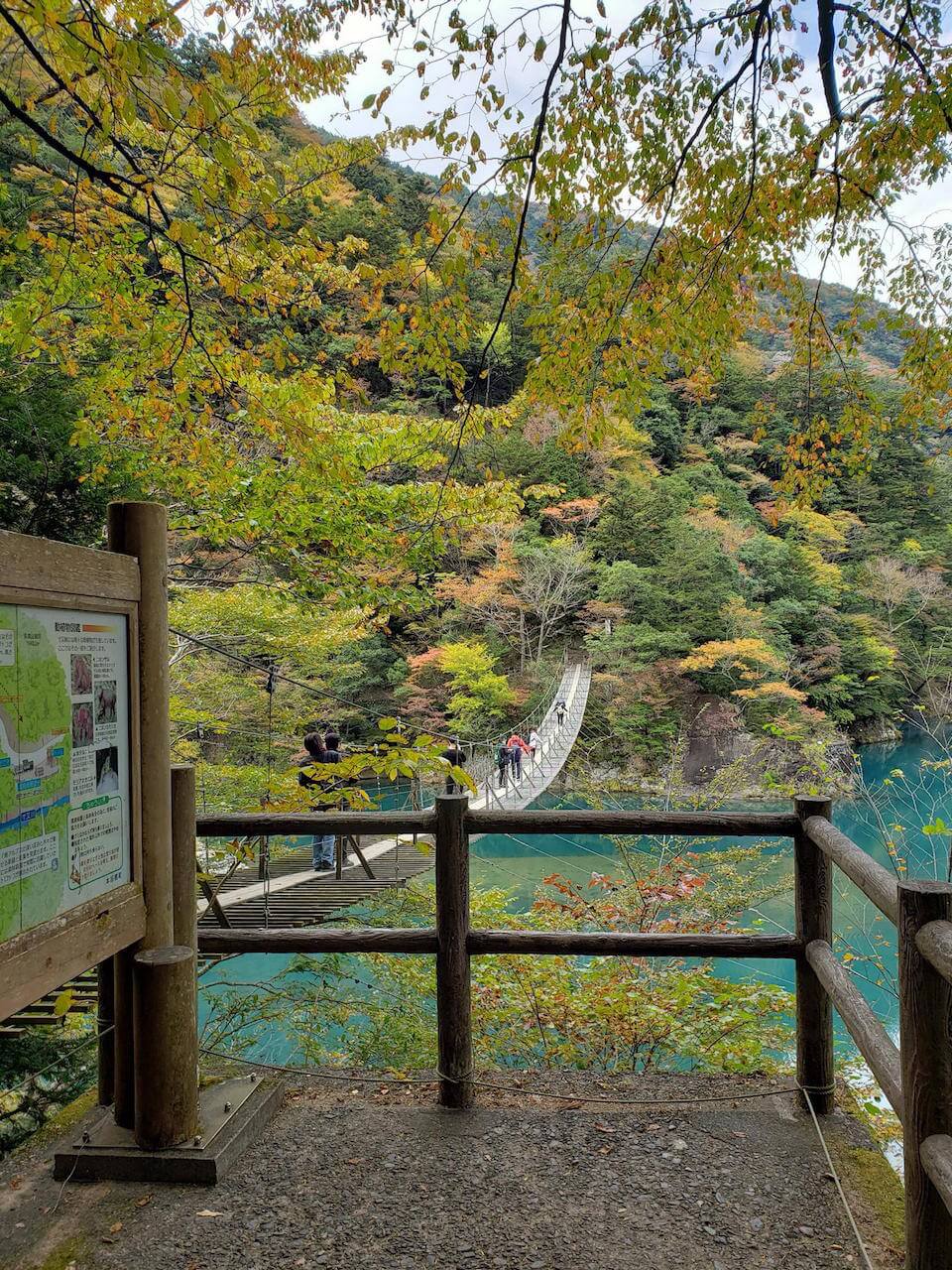 夢の吊り橋コース1.5時間の散策終わったら、昼食べてから1時間の猿並橋コースの散策もできたらなと思ってる