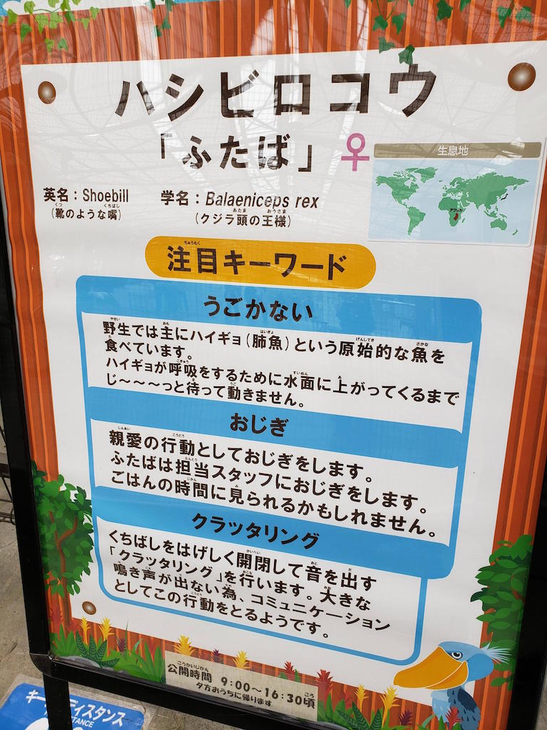ハシビロコウがこの掛川花鳥園でも大きな呼び物らしい