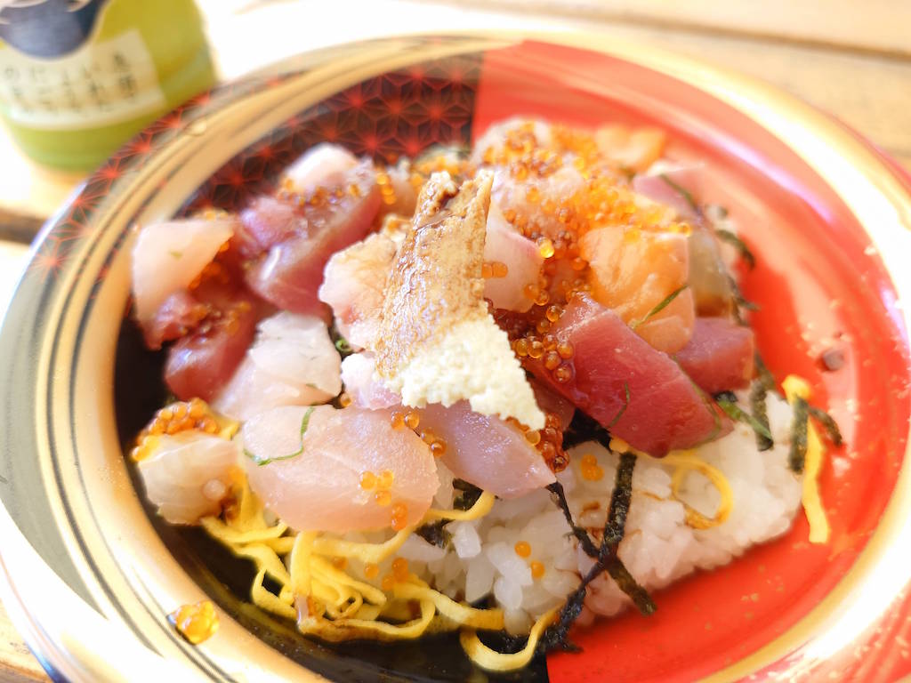 昼食はスーパーで買ったミニ海鮮丼298円