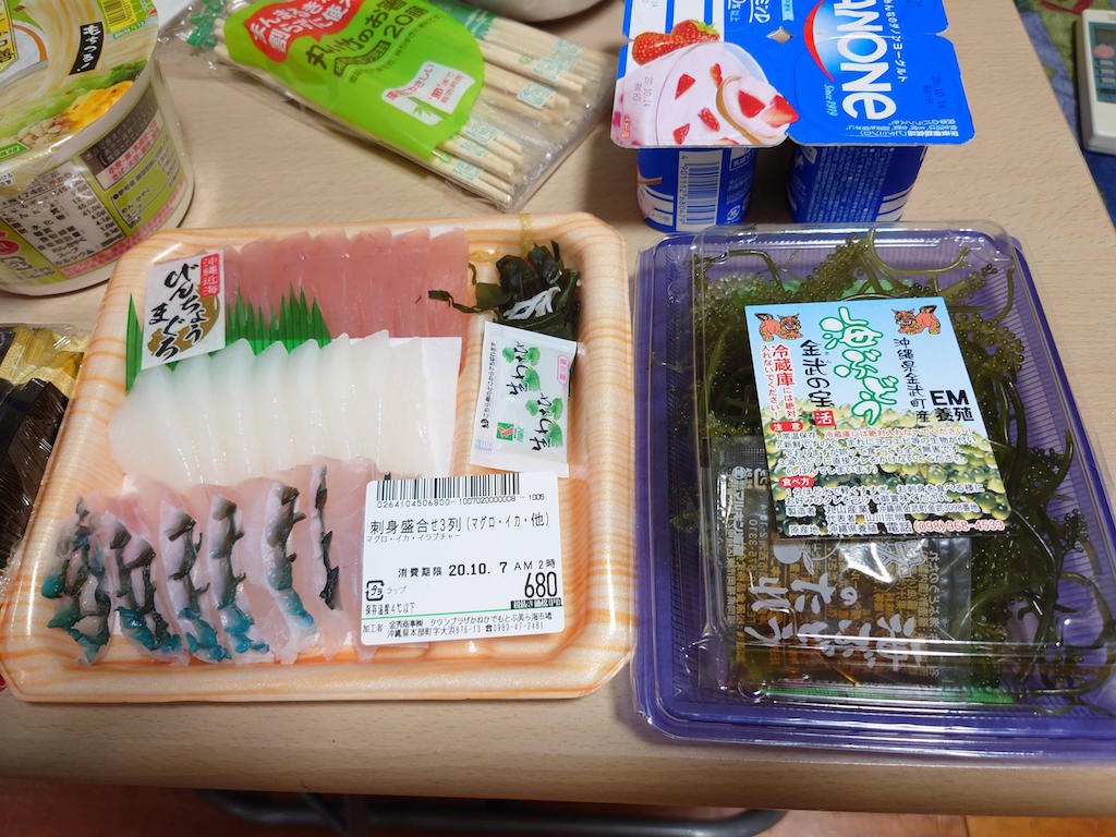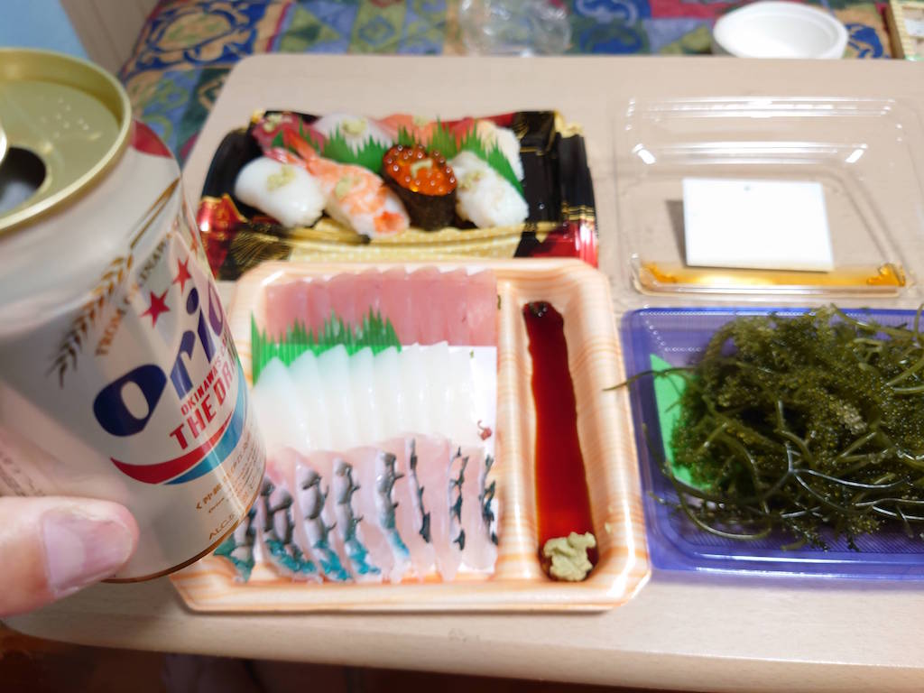 今は瀬底島の民宿に到着してオーナーに教えてもらったやスーパーで夕食の買出し完了して