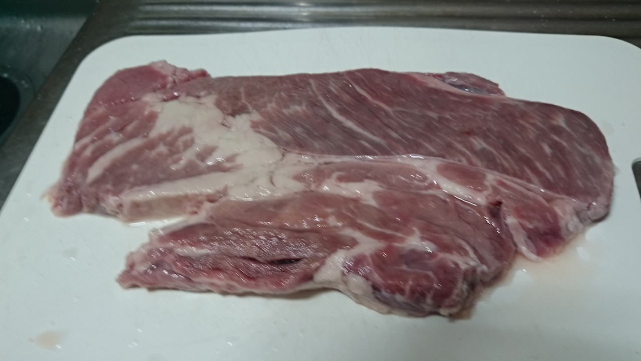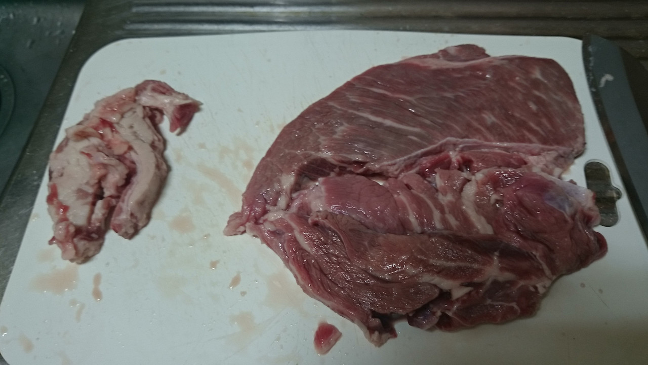 やっぱり真ん中のスジがちょっと硬いので切り取って他の料理用に使うことにします