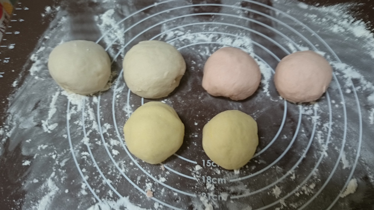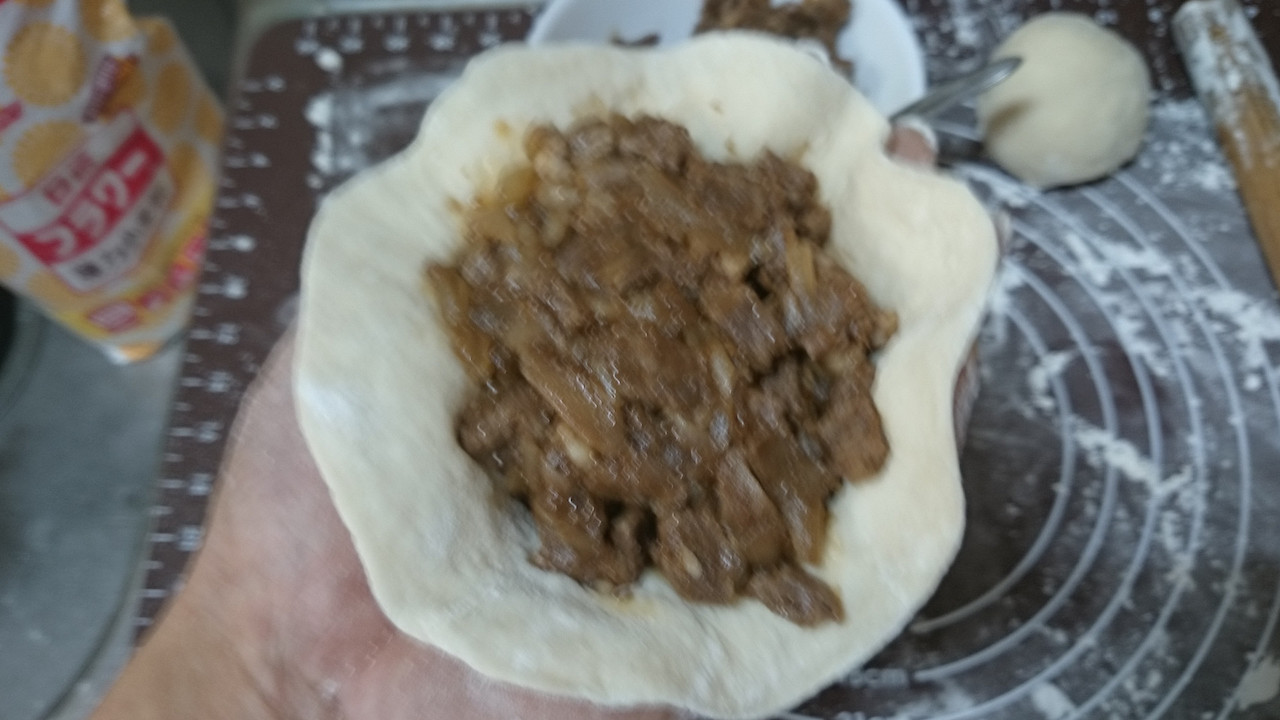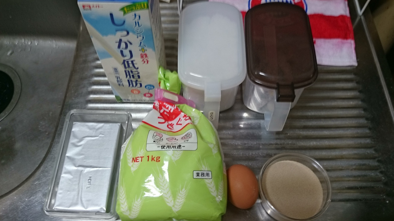 強力粉に対して砂糖を20%に卵加えてぬるま湯で溶いたドライイースト投入