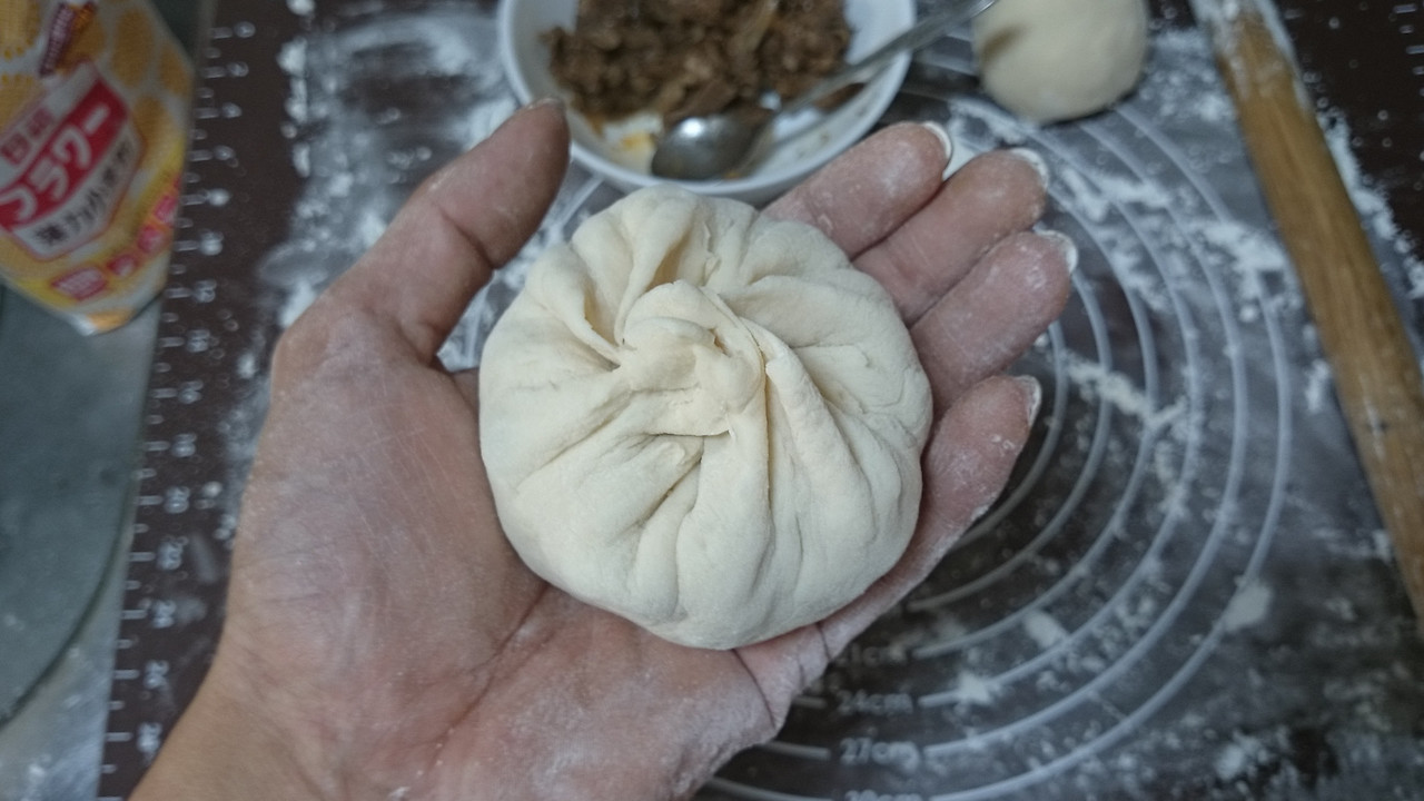 水溶き片栗でとろみをつけて「肉まん」の餡は完成