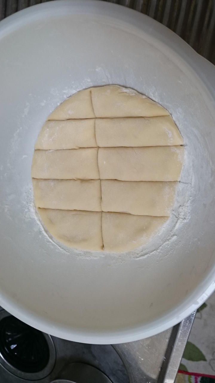 発酵終わって生地が1.5倍ほどに膨らんだら