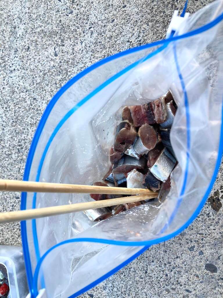 投げ餌はイソメと昨日仕込んだサンマの切り身に味の素まぶしたやつ