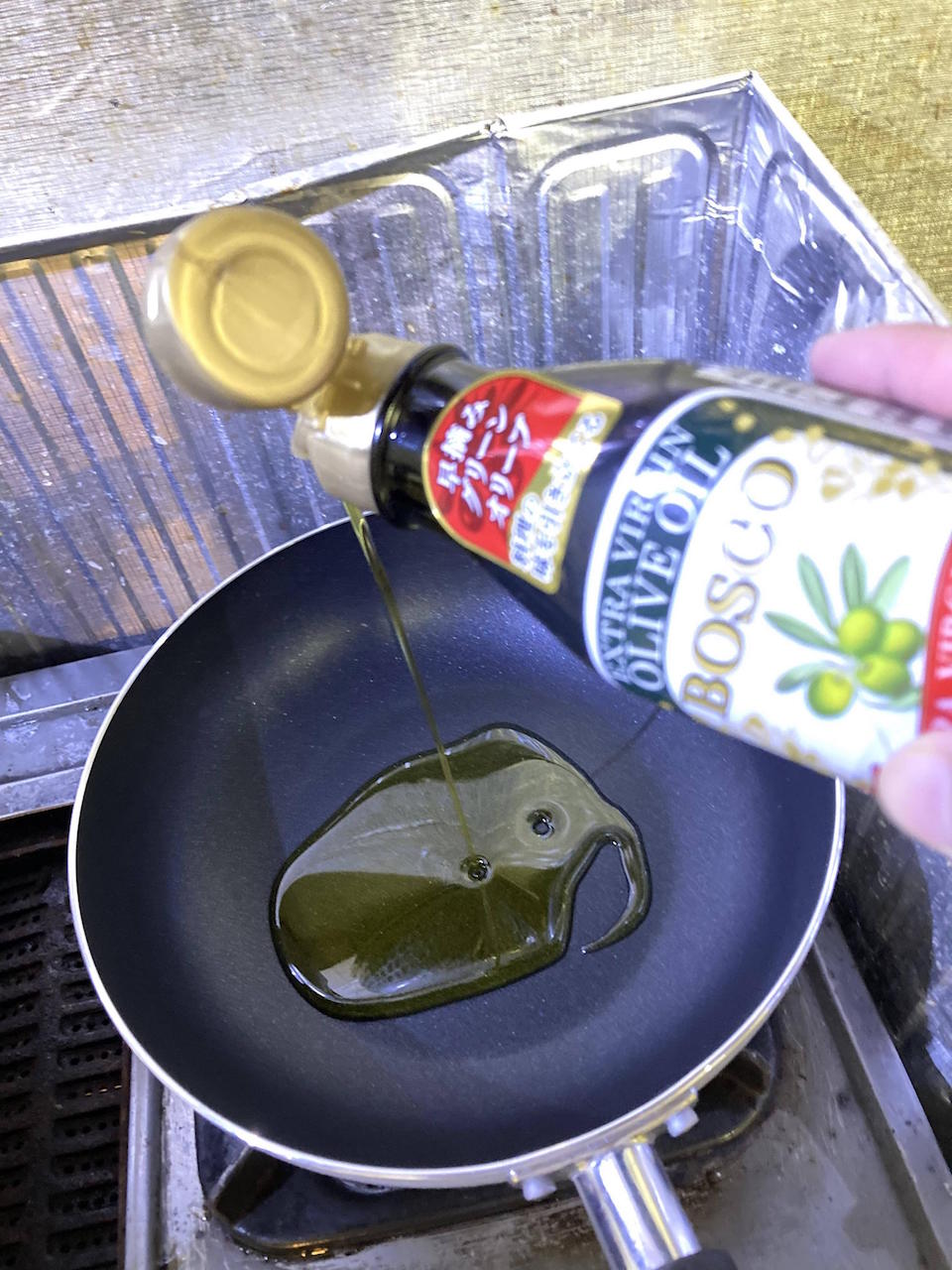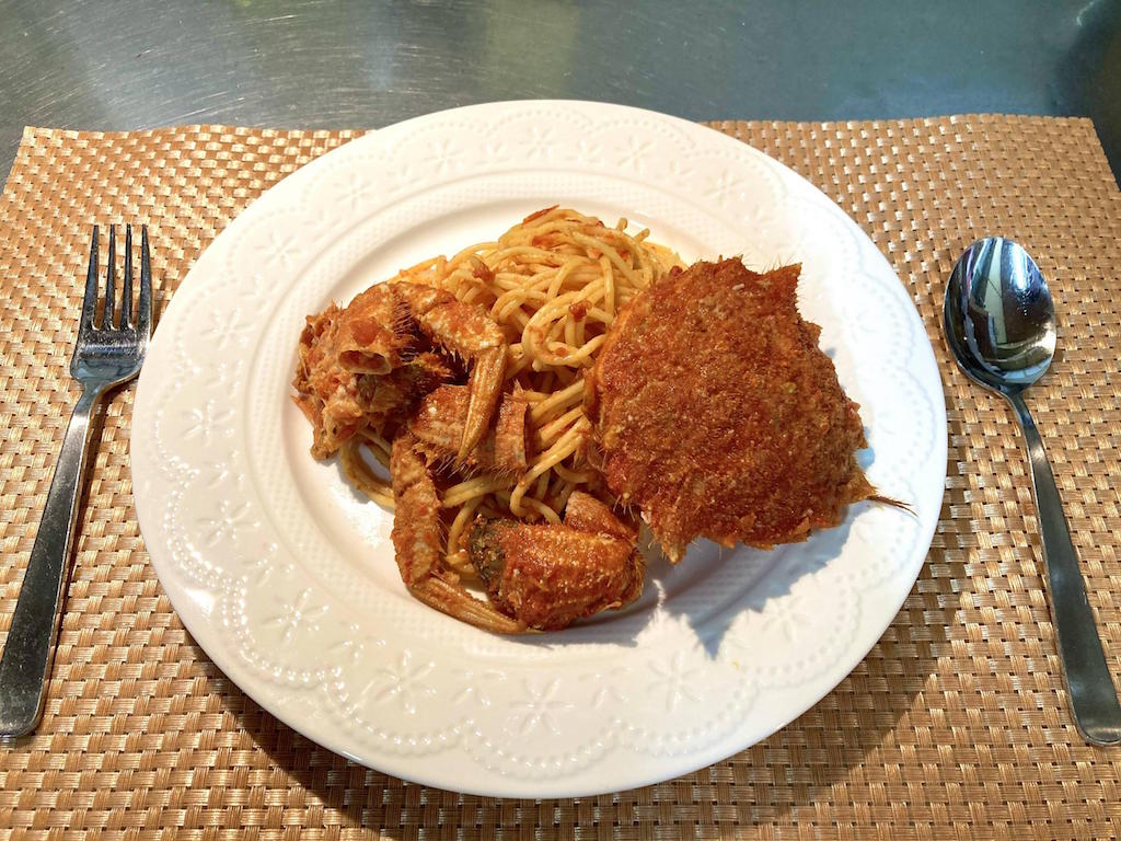 材料はカニ1杯とこの写真の他にオリーブオイルくらい