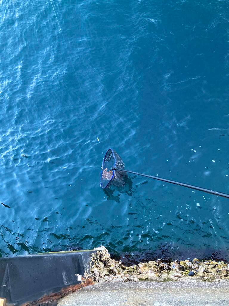 基本は餌掴んだらゆっくり寄せてきてタモで掬うんだけど、もし離しても針に引っ掛かったらラッキー