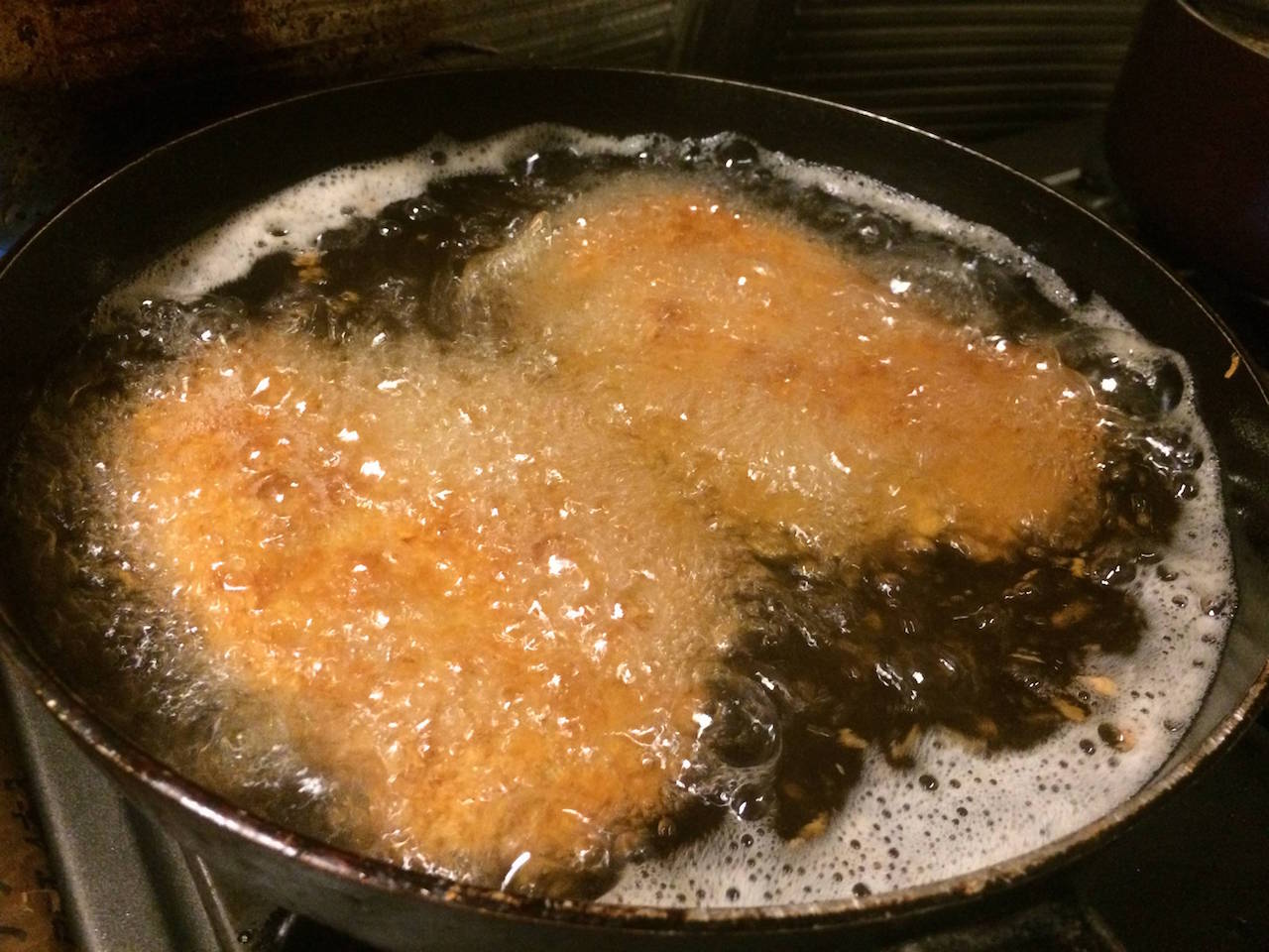この脂の量ならカツは1枚づつ揚げないと温度が下がりすぎて