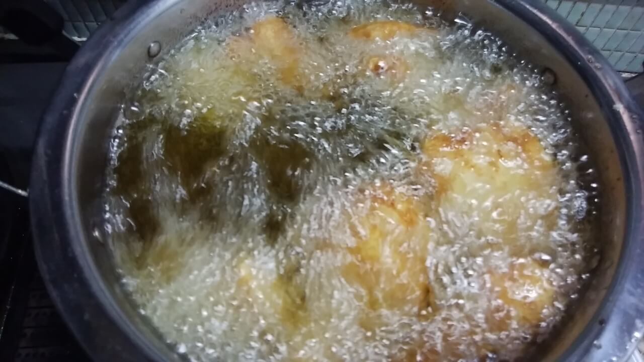 今日は鍋で揚げてみたが