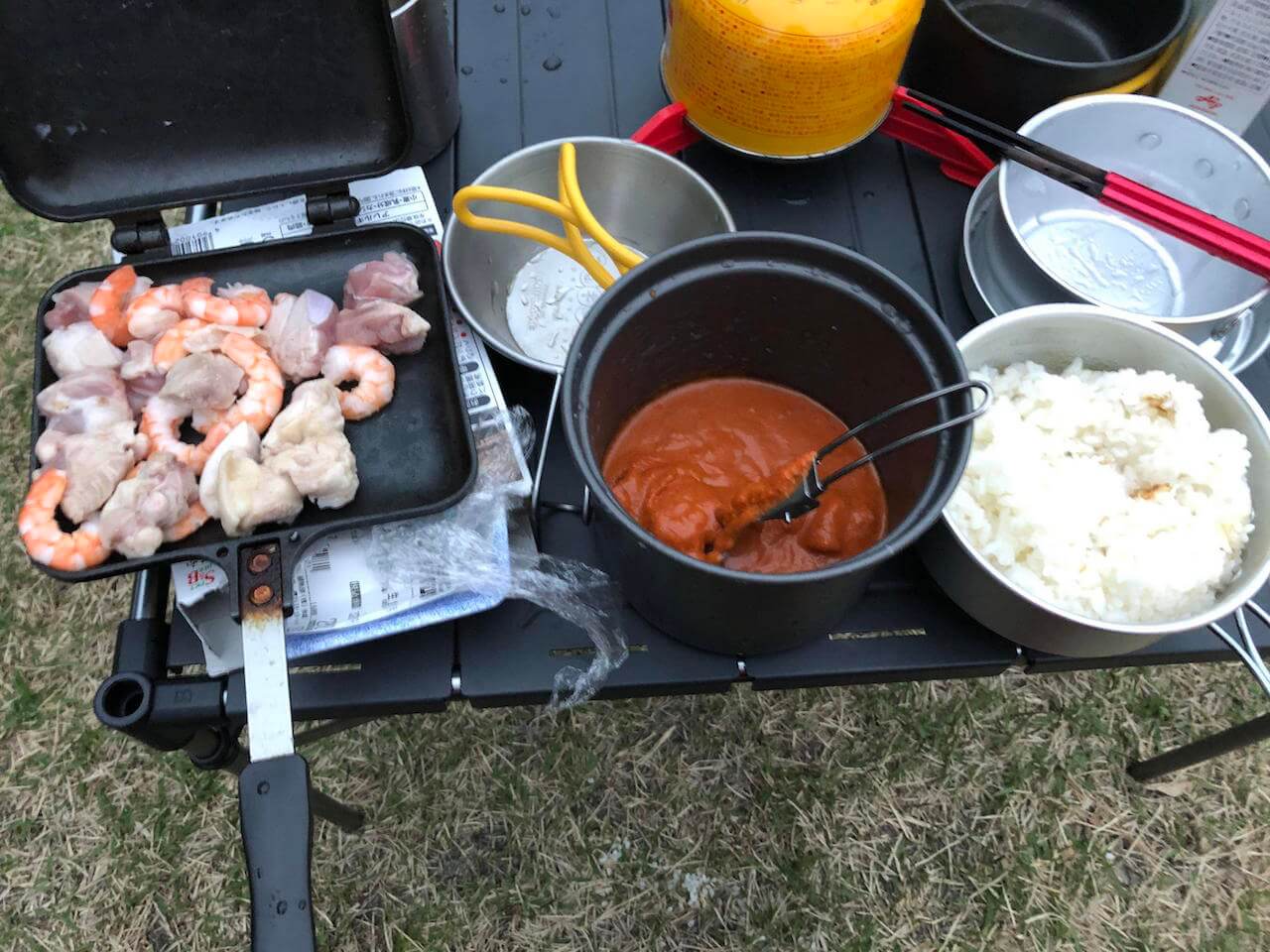 一時期食材は現地調達してたけど調理めんどくさ過ぎて事前に家で下拵えするようになったわ