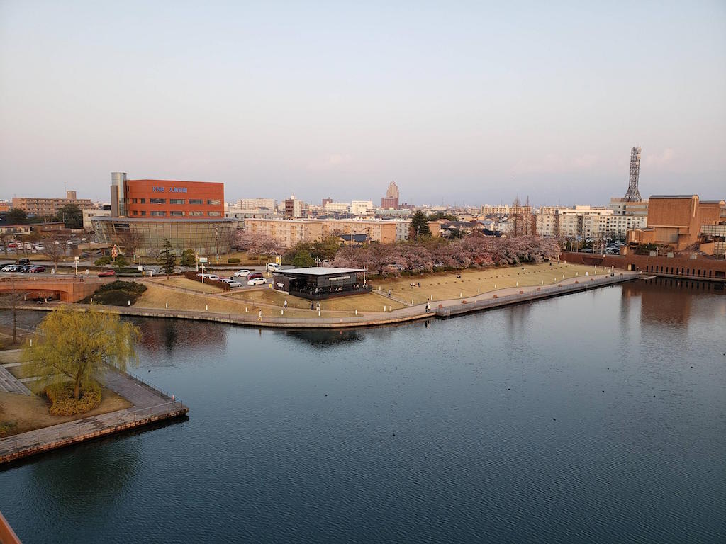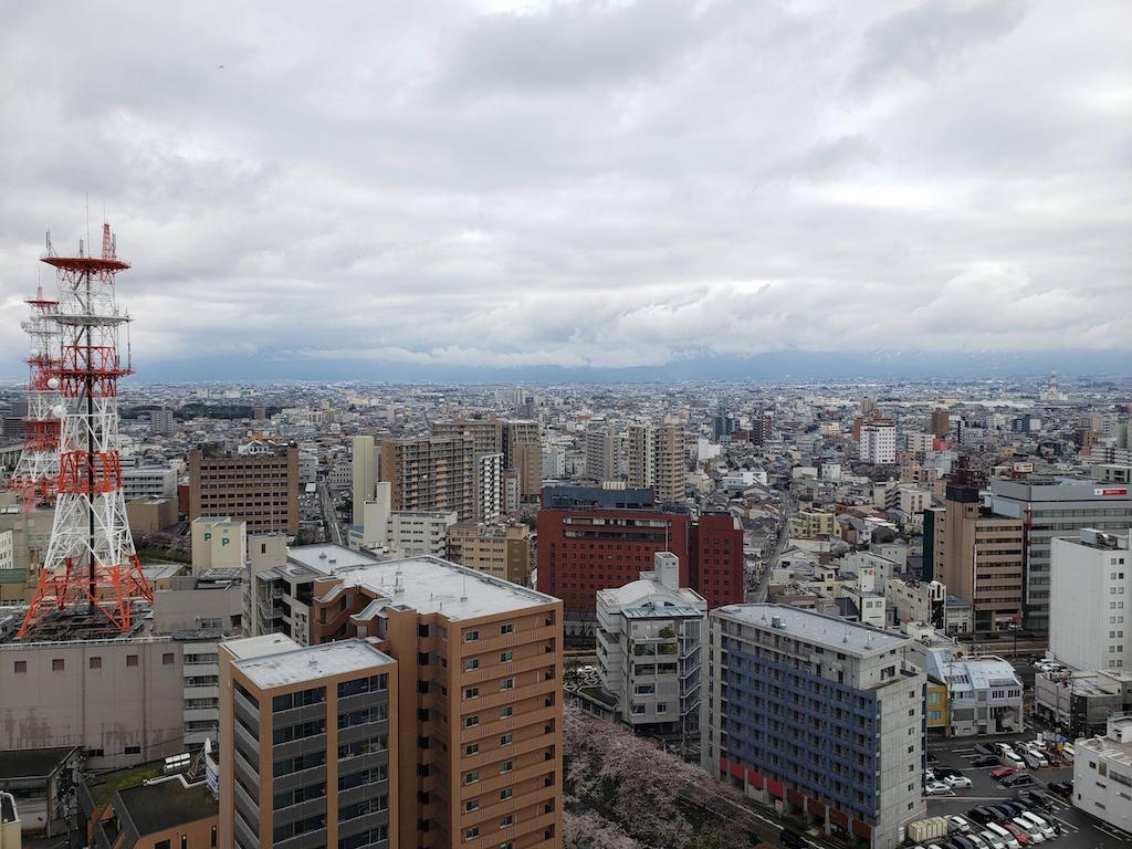 立山連峰は残念ながら雲に隠れてしまったけれど、富山城址公園と桜の風景がとても綺麗やった