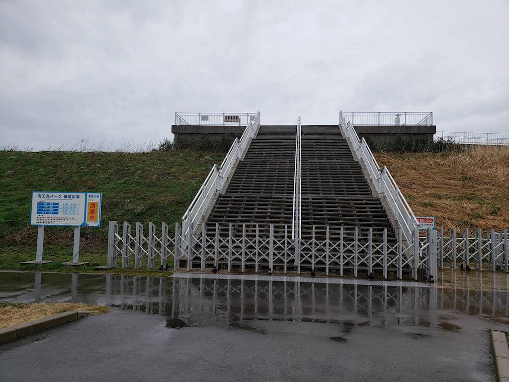 海王丸や新湊大橋を一望できる展望台に登るのが楽しみだったんやけど、閉鎖されてた