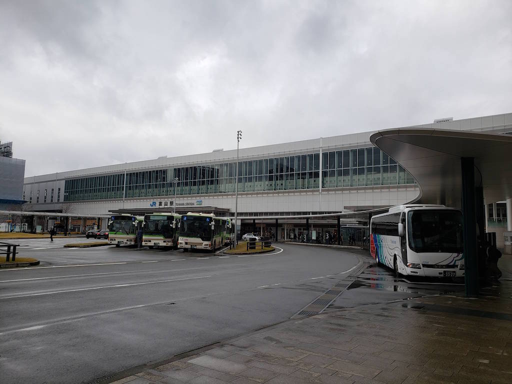 高岡駅から富山駅に戻り、富山駅からバスで10分くらいだったかな