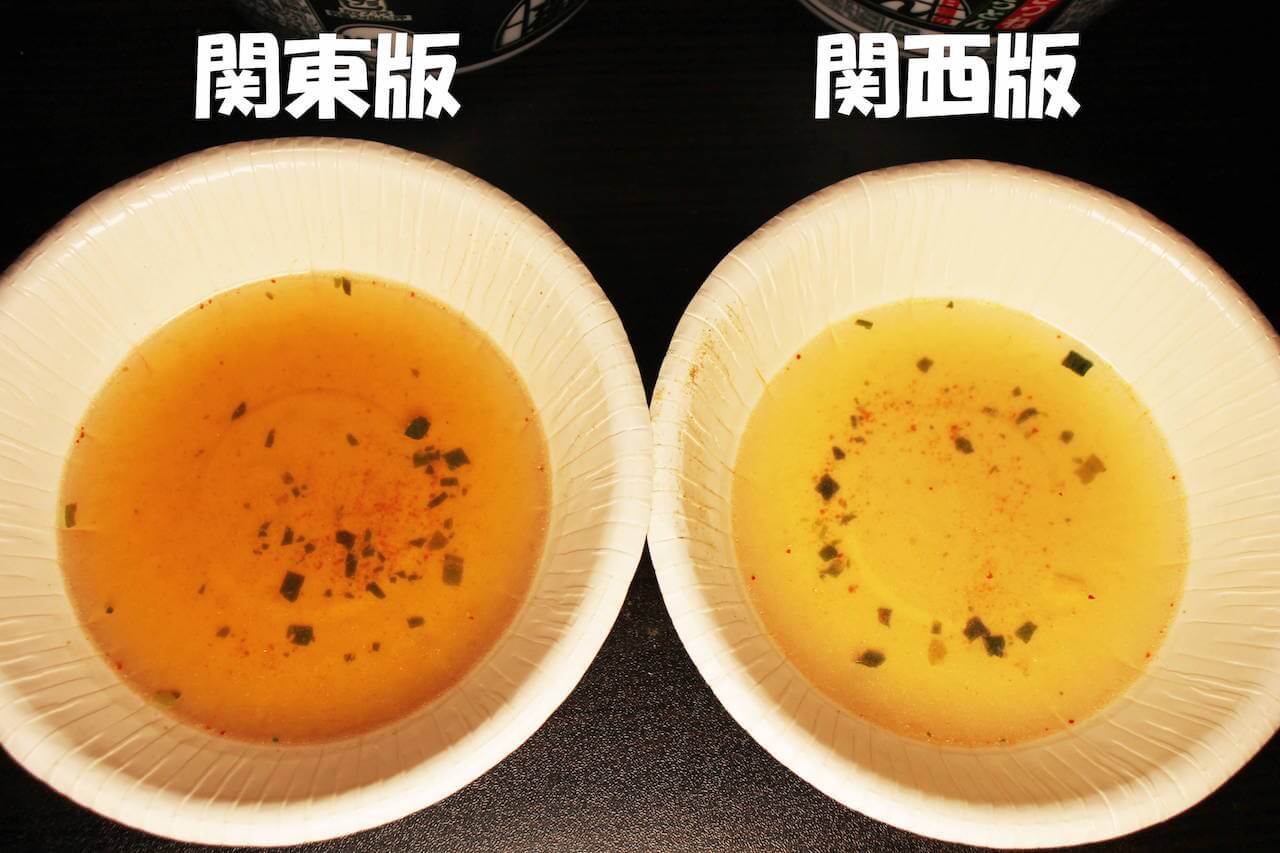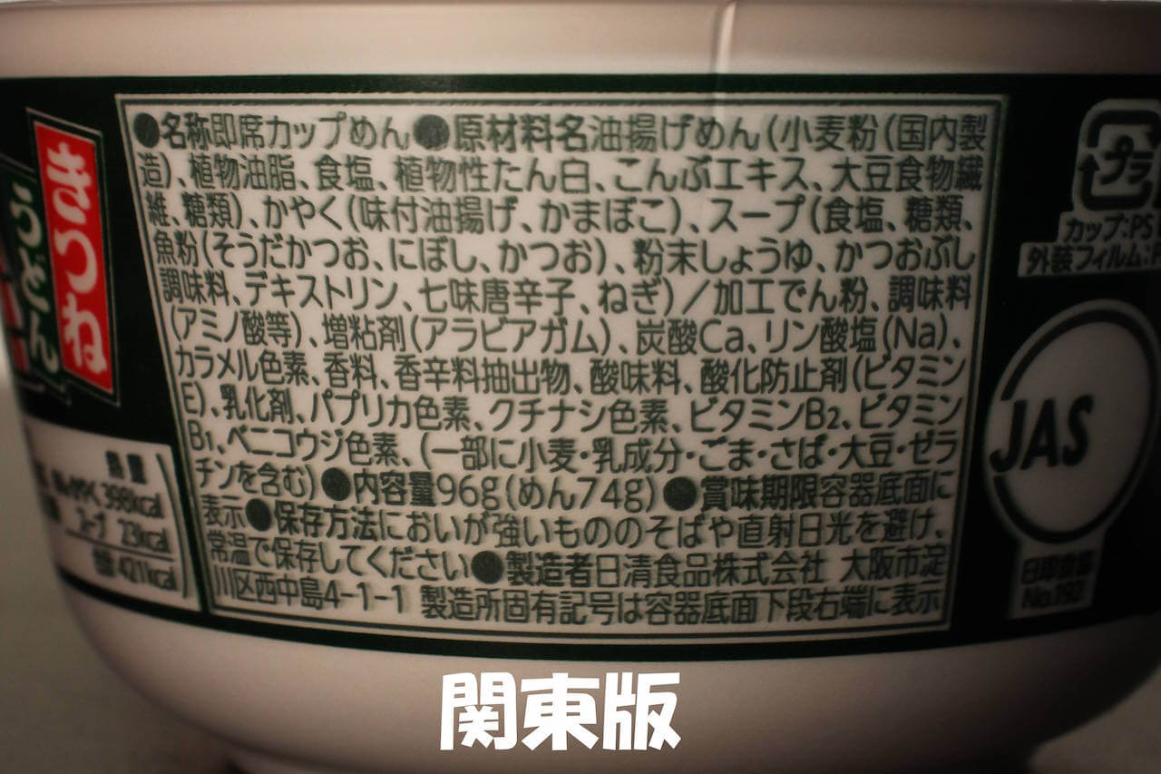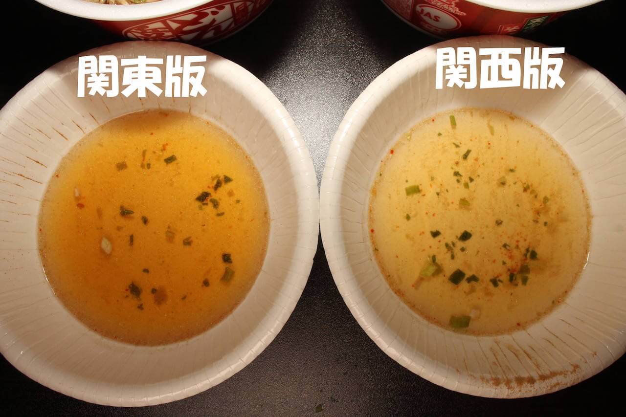 分かりにくいけど、関西版にはスープに魚介調味料があって、関東版にはないんかな?