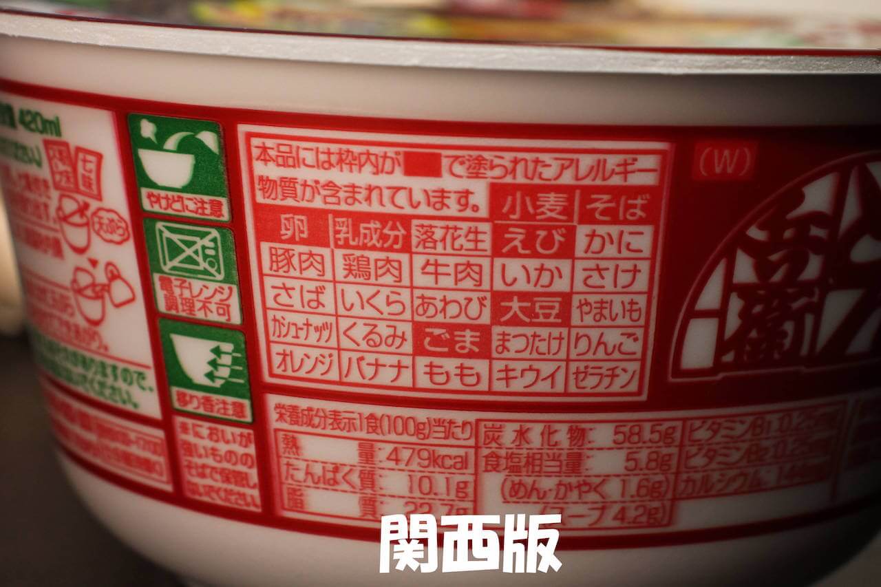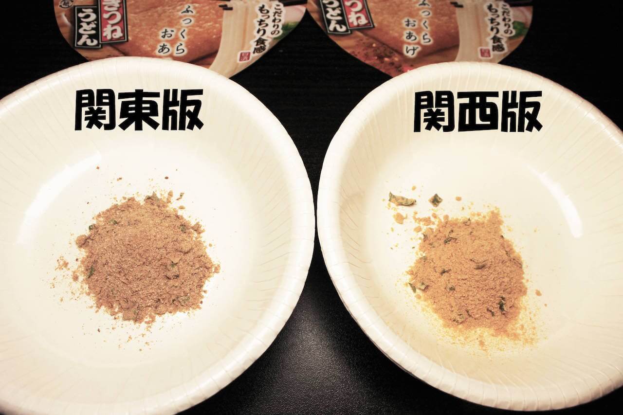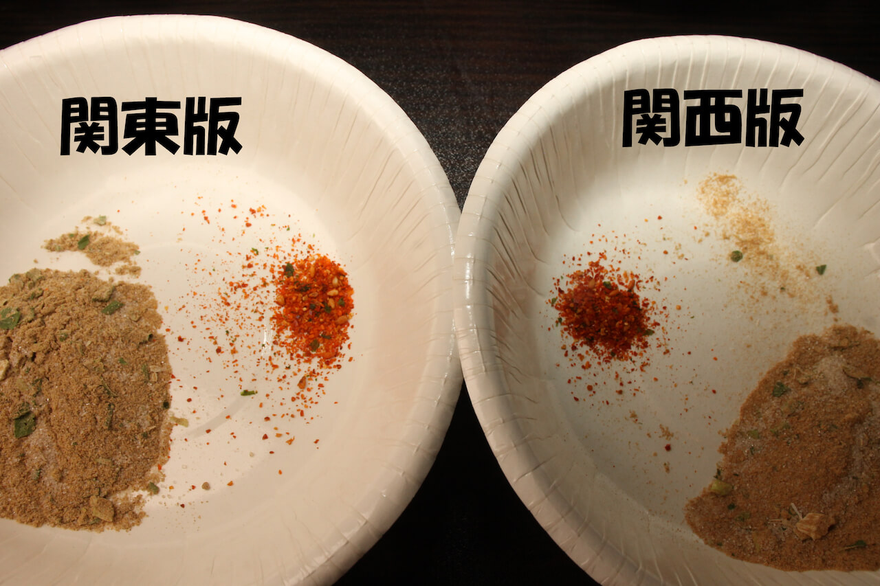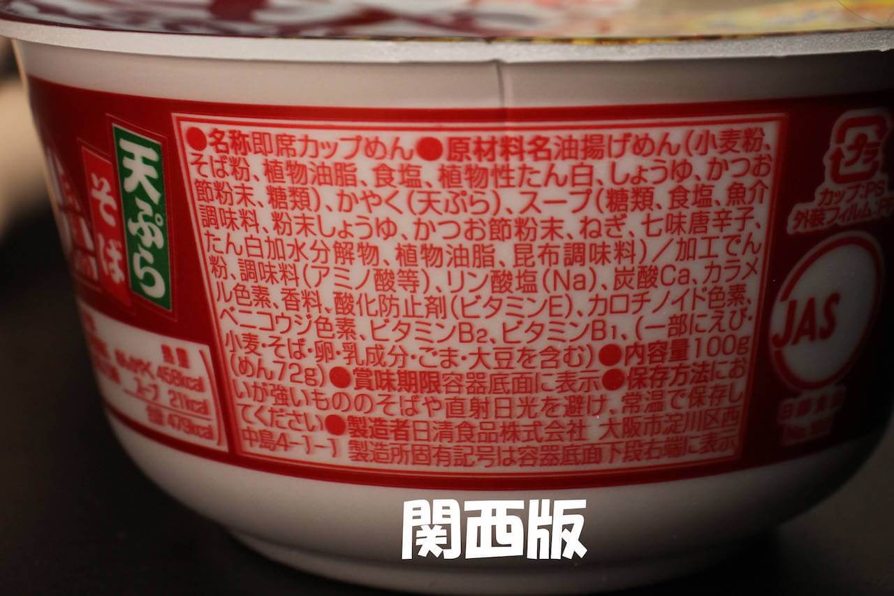 分かりにくいけど、関西版にはスープに魚介調味料があって、関東版にはないんかな?