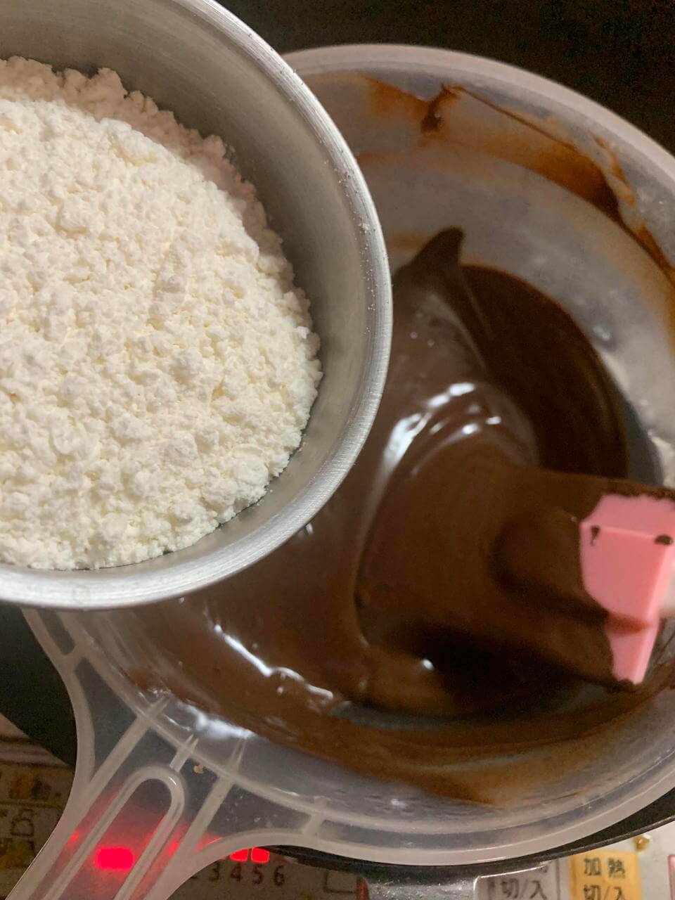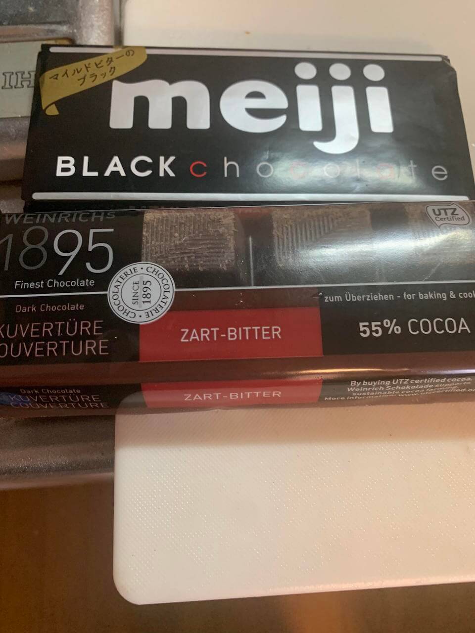 製菓用のビターチョコと明治のブラックチョコでいくで