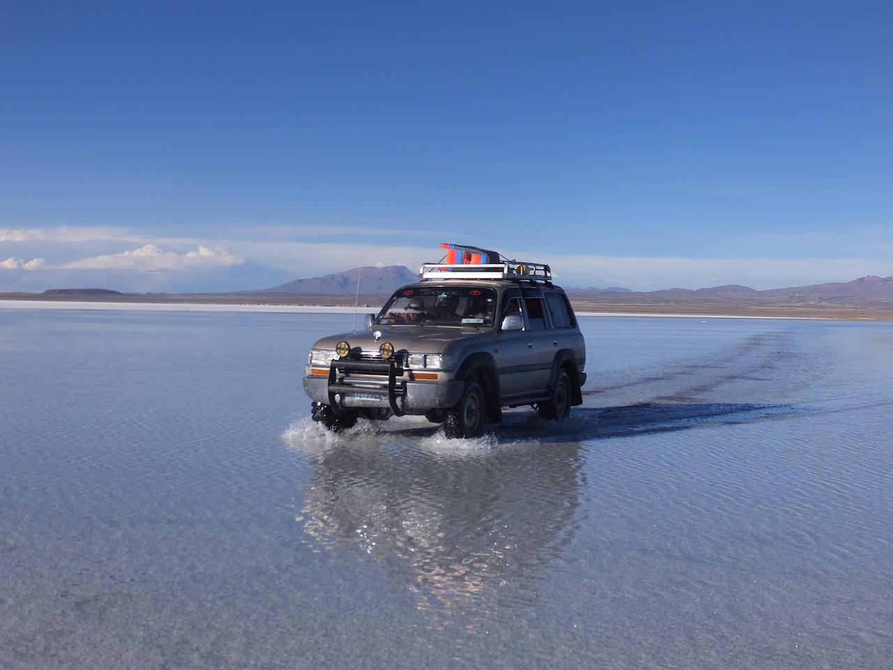 ウユニ塩湖には皆とツアーを組んでランクルで行くよー