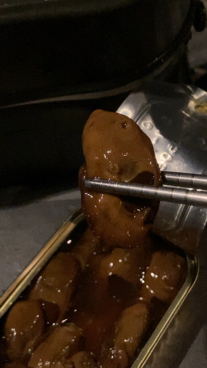 醤油適量と焼き鳥缶とエノキをよーく混ぜて炊けば簡単釜飯の完成