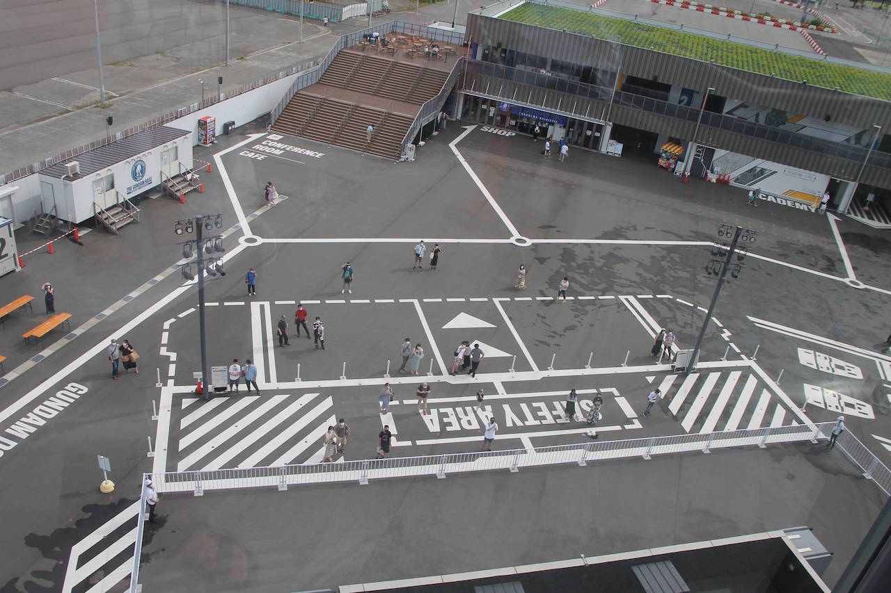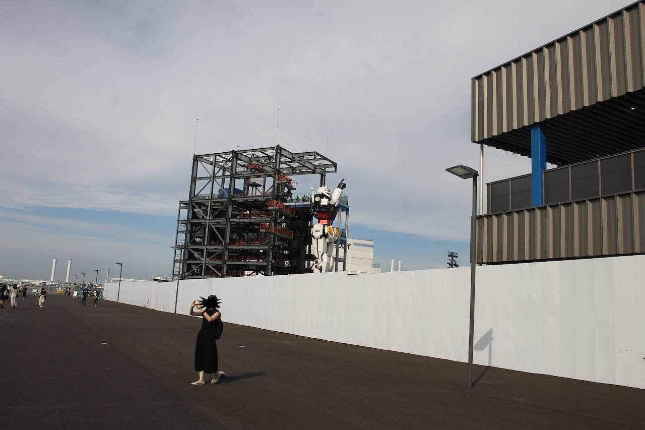 施設の外からもガンダムは見えるので、外から撮影してる人もいっぱいおったで