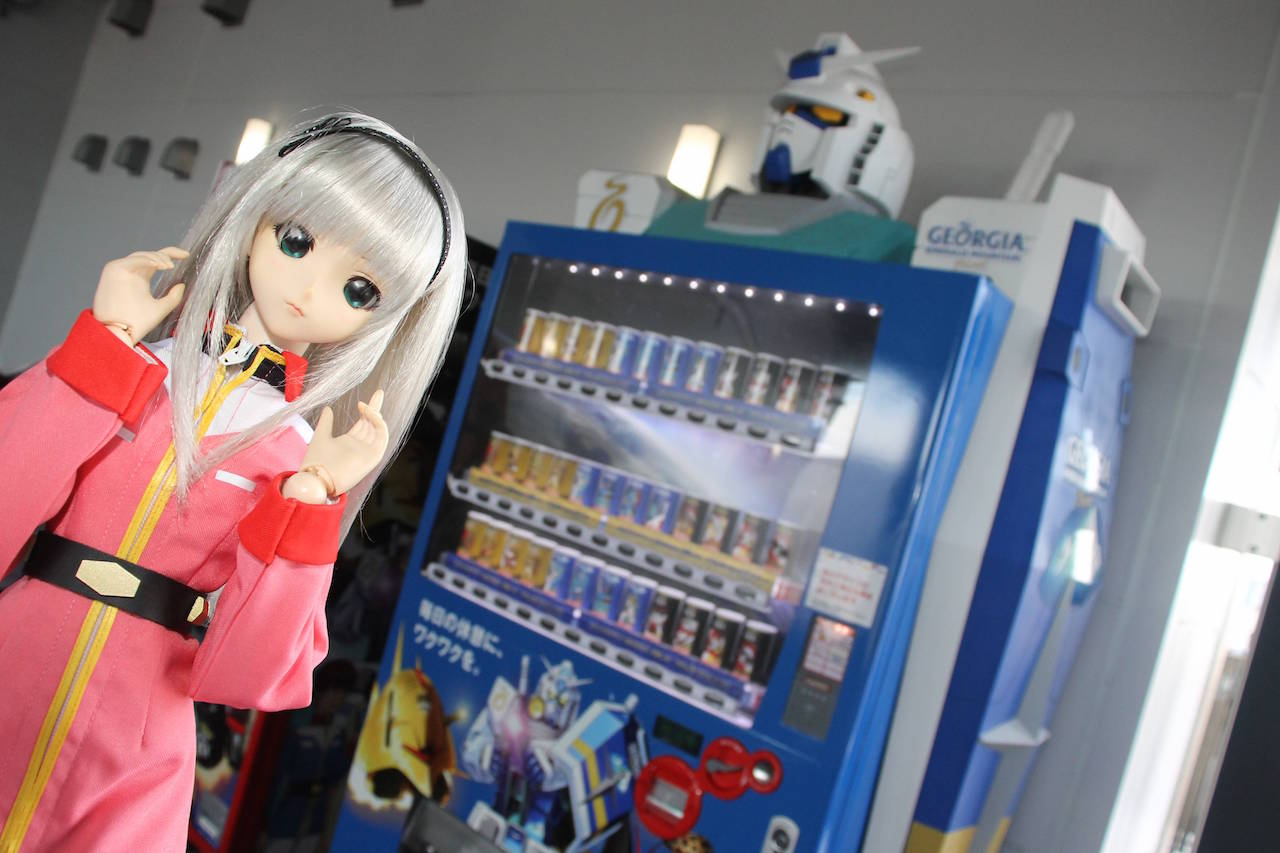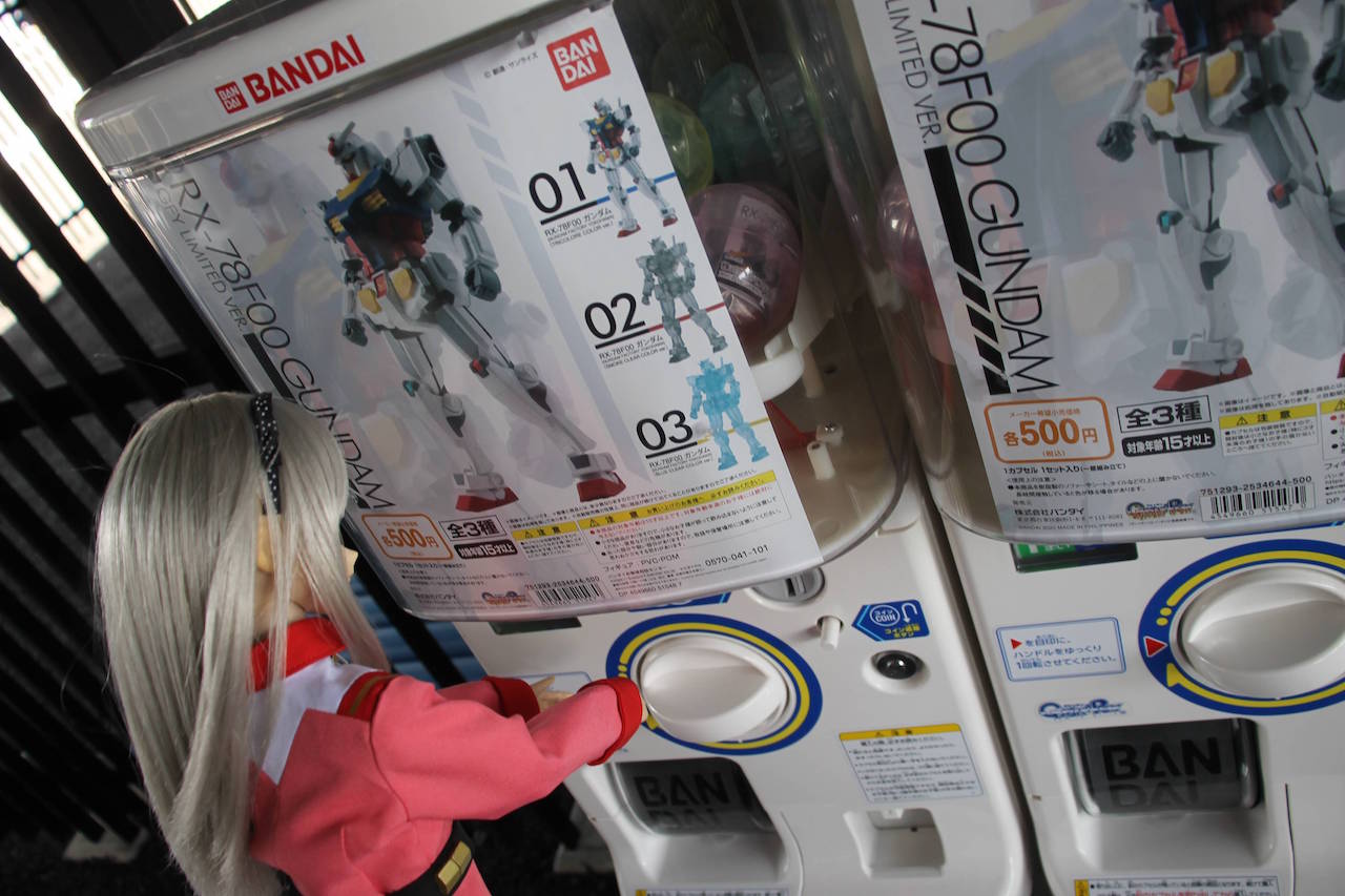 ガンダムデザインの自販機とか、限定のガチャポンも!