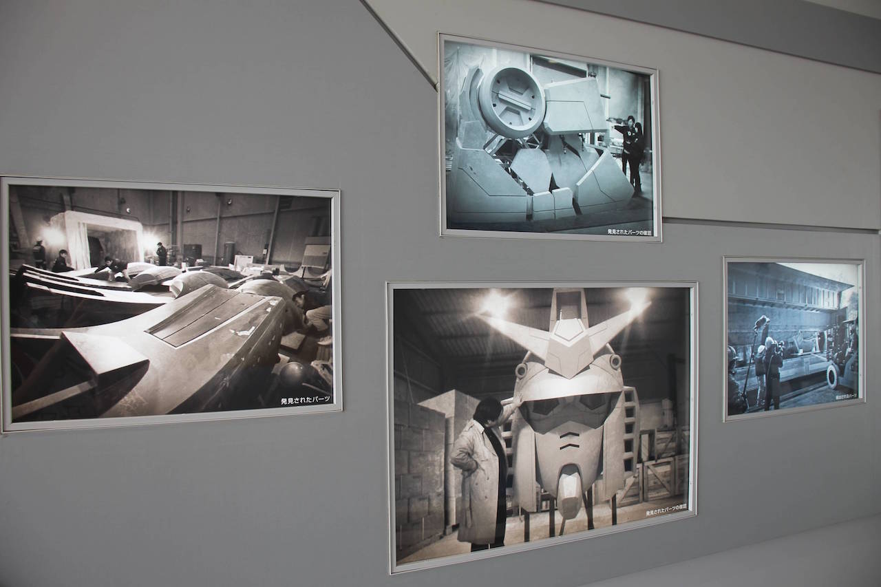 入口にはガンダムパーツの発掘現場と組み立て現場の写真がたくさん