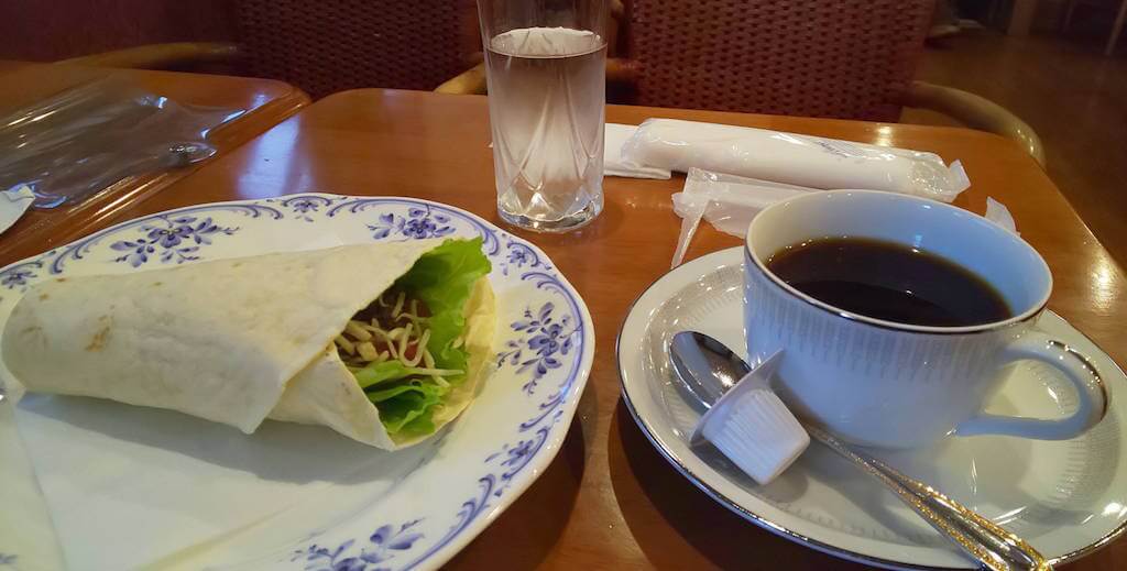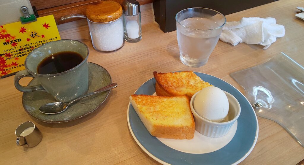 商店街にあるコーヒー屋さんにて朝食。