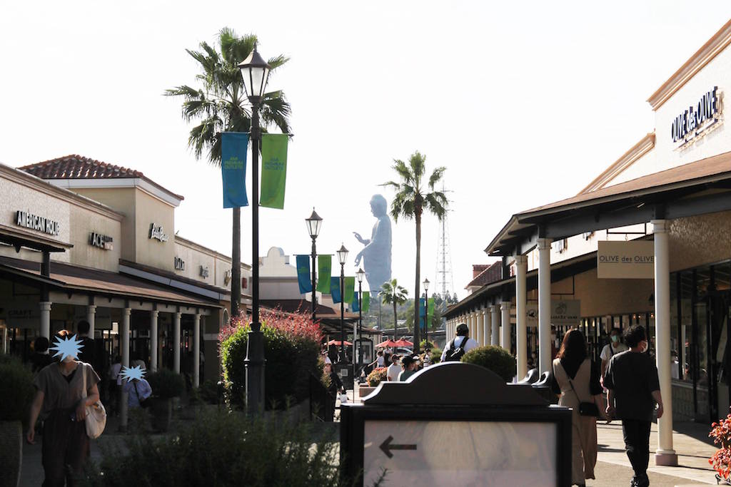 牛久大仏のあと、隣のバス停にある、あみプレミアムアウトレットにも行ったんやけど、そこからも牛久大仏が見えてたわ!