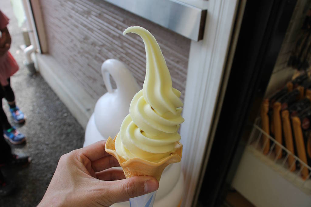 その後仲見世通りで爆弾焼きと茨城梨のソフトクリームを頂いて牛久大仏をおいとましたで