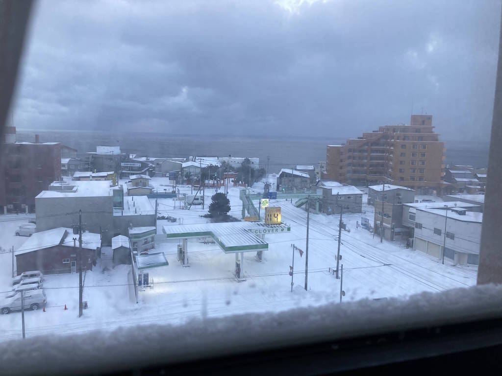 この時点では函館市内も雪は降っておらず