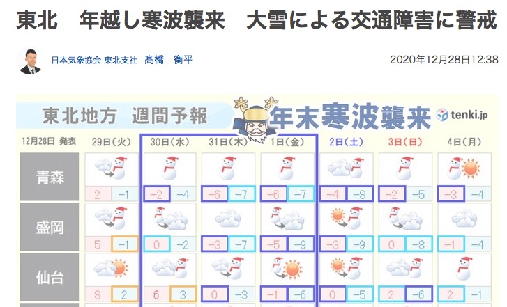 ご存知の通り、この年末年始は寒波が