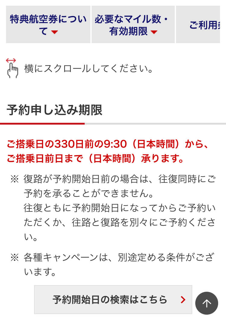 予約はご搭乗日(12/31)前日(12/30)まで…