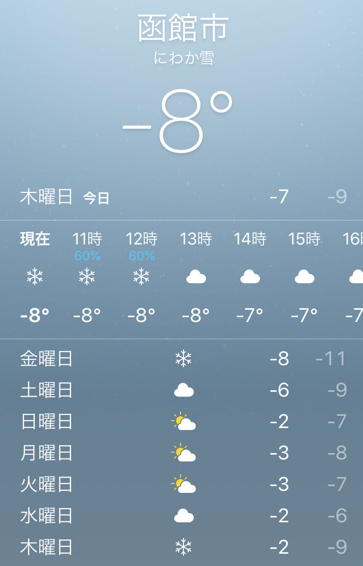 なお気温氷点下15度