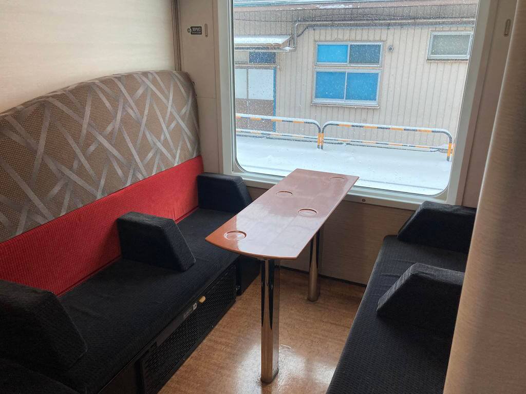 狭い車内ではございますがごゆっくりお休みください
