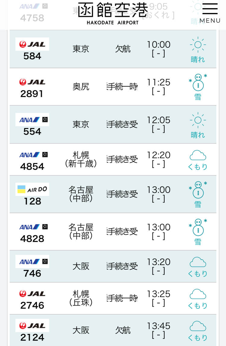 これに至ったのはJALのホームページで見つけた欠航情報や