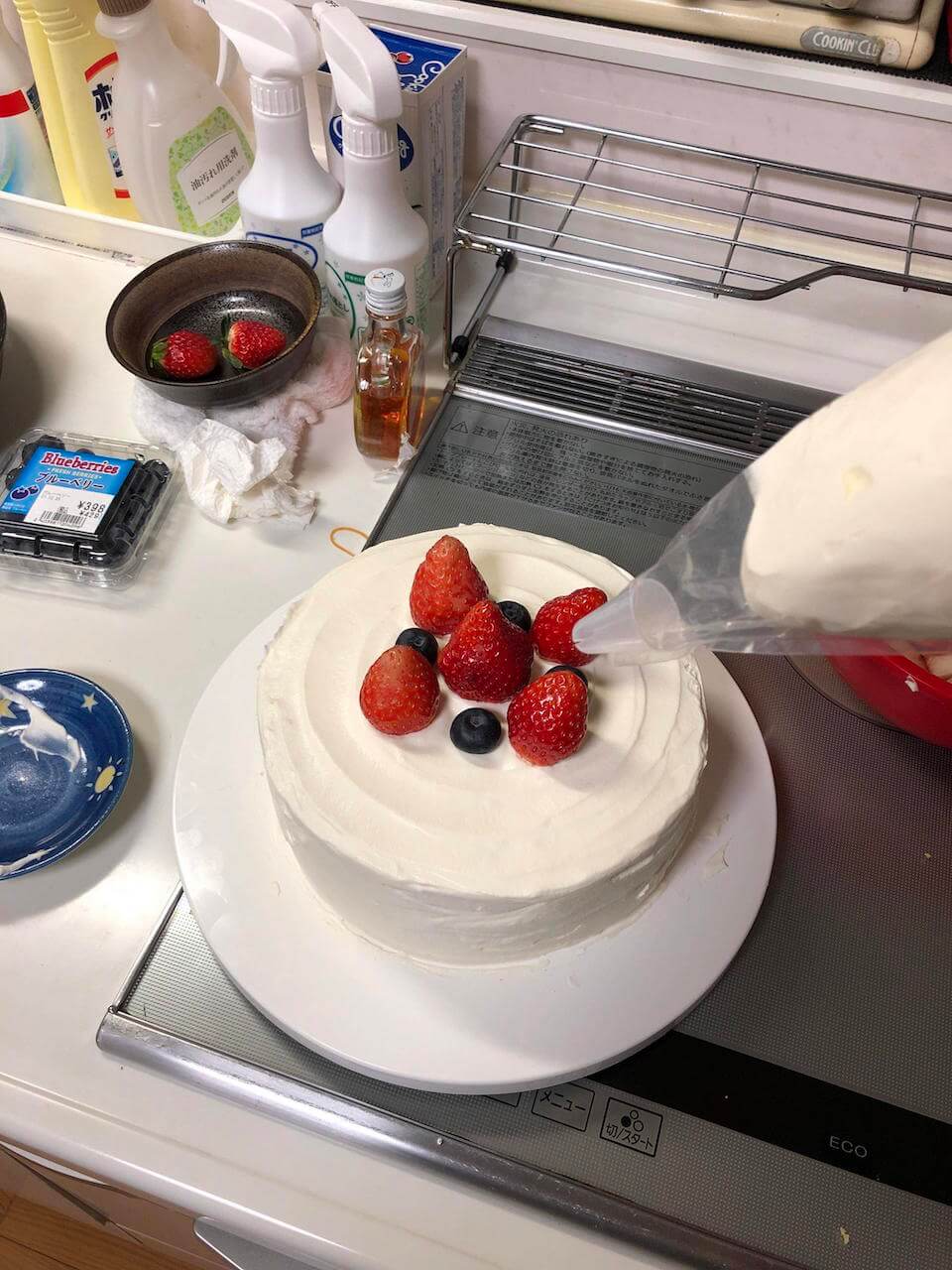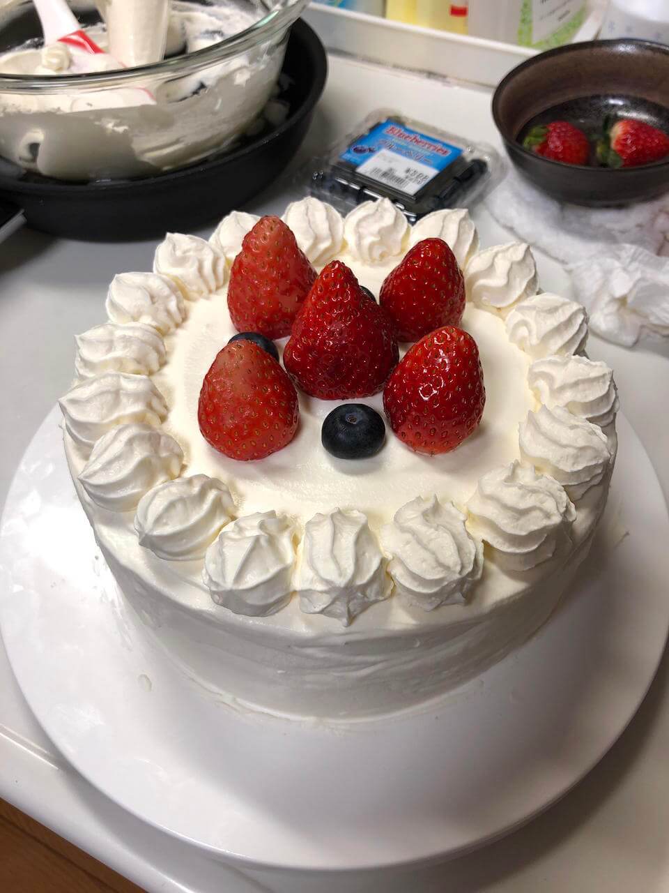 飾り付け用のイチゴがもう無いしブルーベリーこれ以上置いてもバランス悪くなるだけな気がするので余計な事はしないでおこう