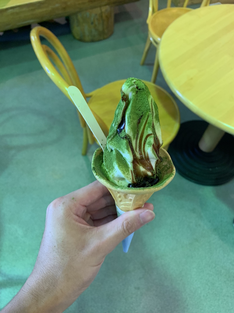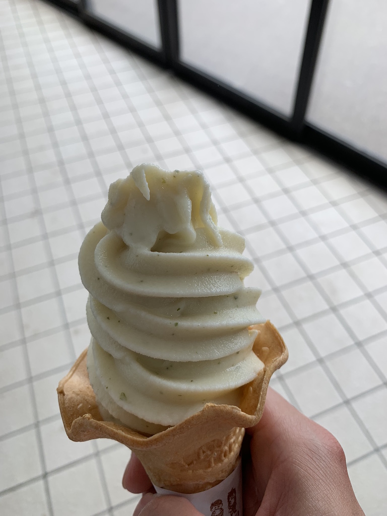 青森県十和田市の奥入瀬渓流館の苔ソフト