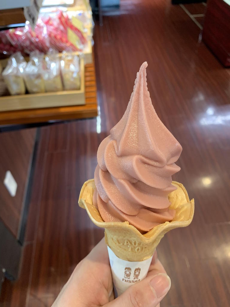 岩手県二戸市の南部せんべいソフト(ルビーチョコ味)