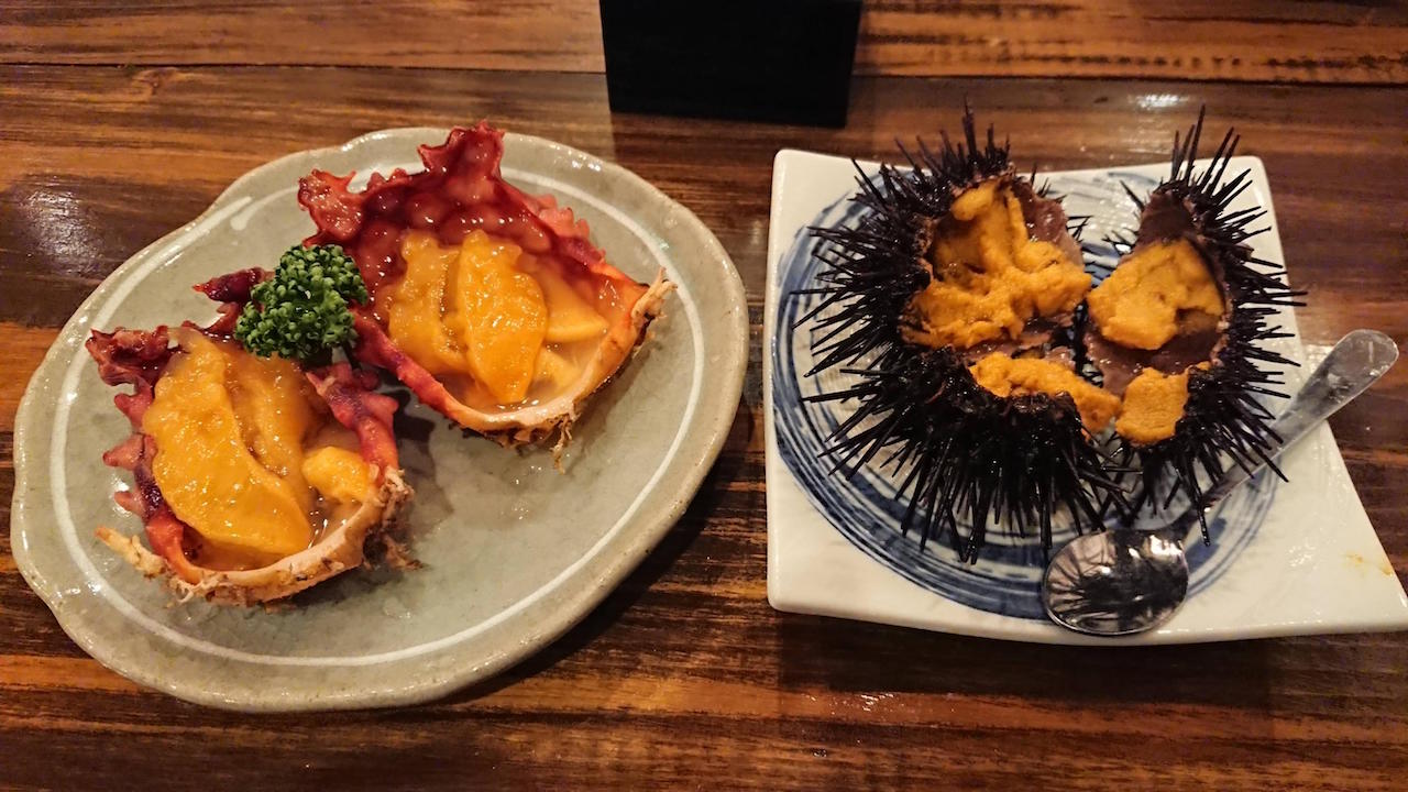 盛岡市の居酒屋で食べたサバのたたきとウニとホヤ刺身
