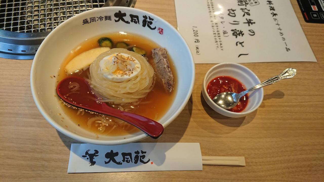 盛岡あたりの食道園(?)ってとこで冷麺と牛タン食べたけど美味かったで