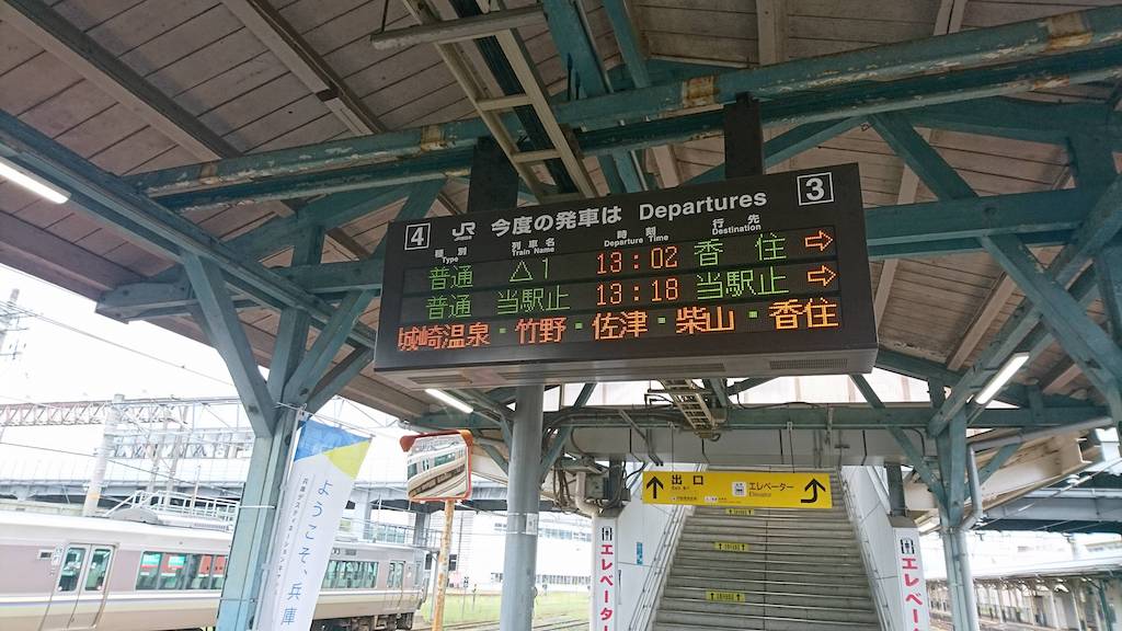 園部、福知山、豊岡で乗継城崎温泉駅へ