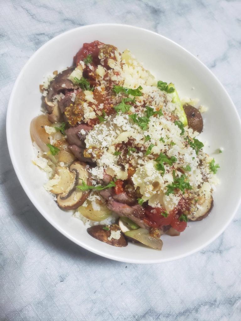 じゃあまず野菜と彩り、肉をステーキ肉にしてハニーマスタードとかおしゃれやん?みたいな笑