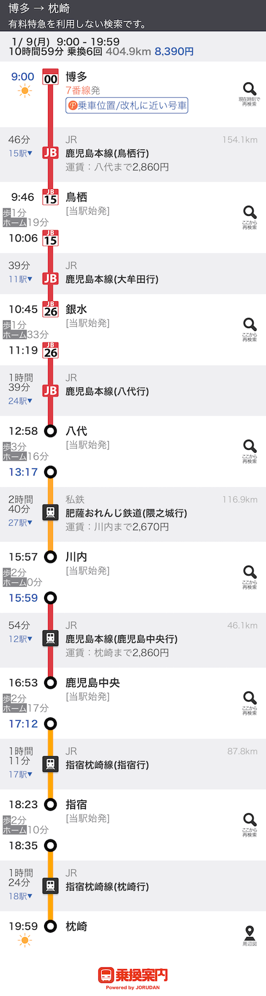 東京から枕崎や
