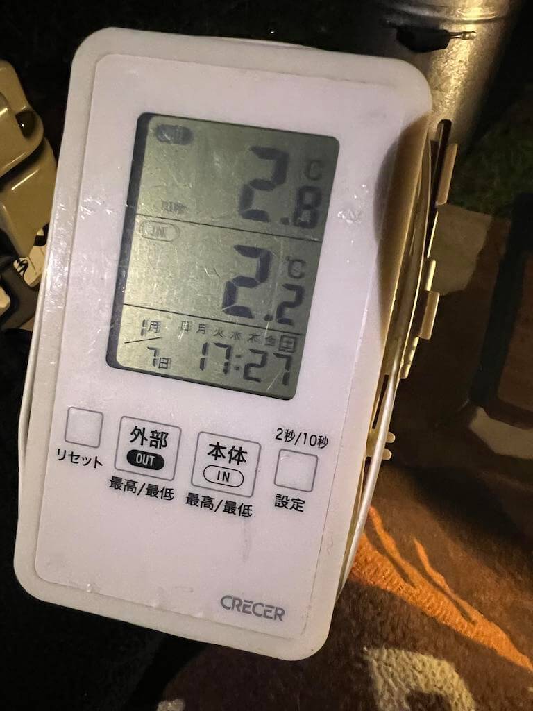 0°F対応のアンダーキルトと冬用寝袋あるから平気