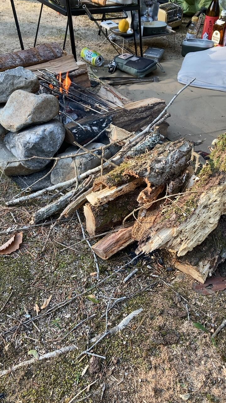 あとこのキャンプ場の良い所は薪や小枝が拾えること