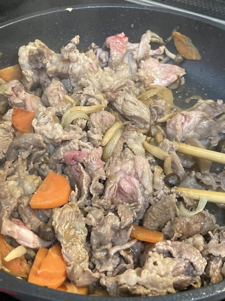薄切り肉も加えるんか