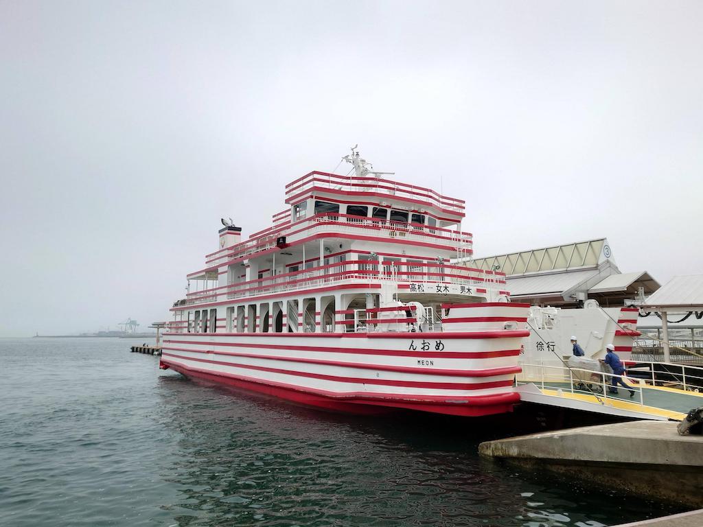 珍しいデザインの船やな鬼ヶ島のモデルの島あるの知らんかったから楽しみや