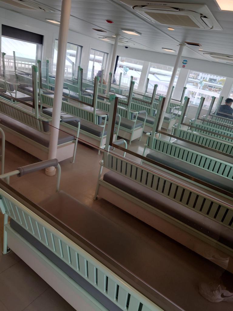めちゃくちゃ目立つフェリーに乗って20分で着くらしいよ